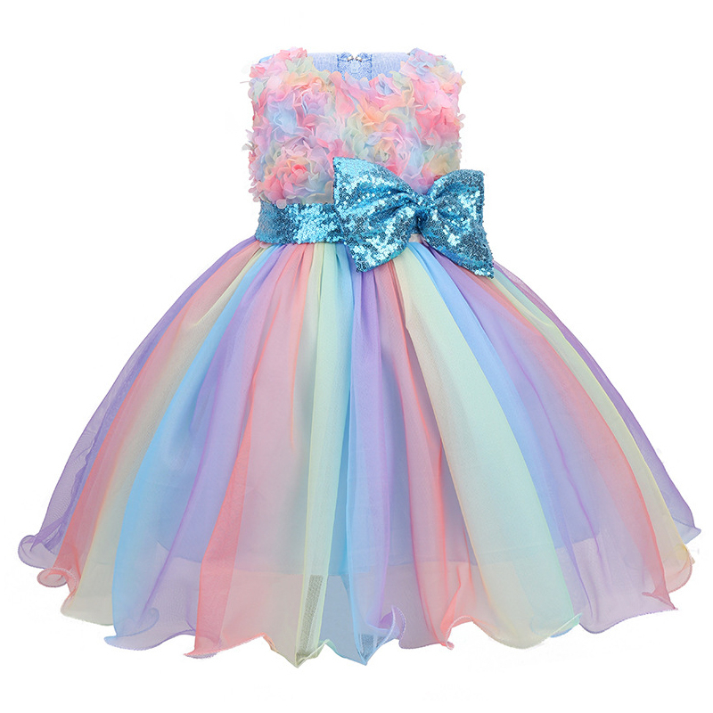 3-10 Anos Novas Flores Meninas Vestido De Princesa Verão Arco-Íris Malha Bebê Presente De Aniversário Roupas Infantis