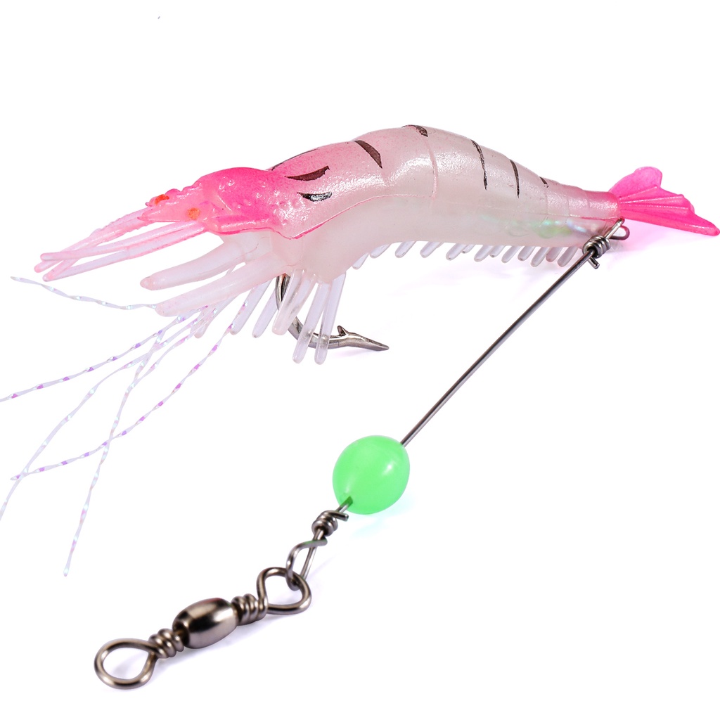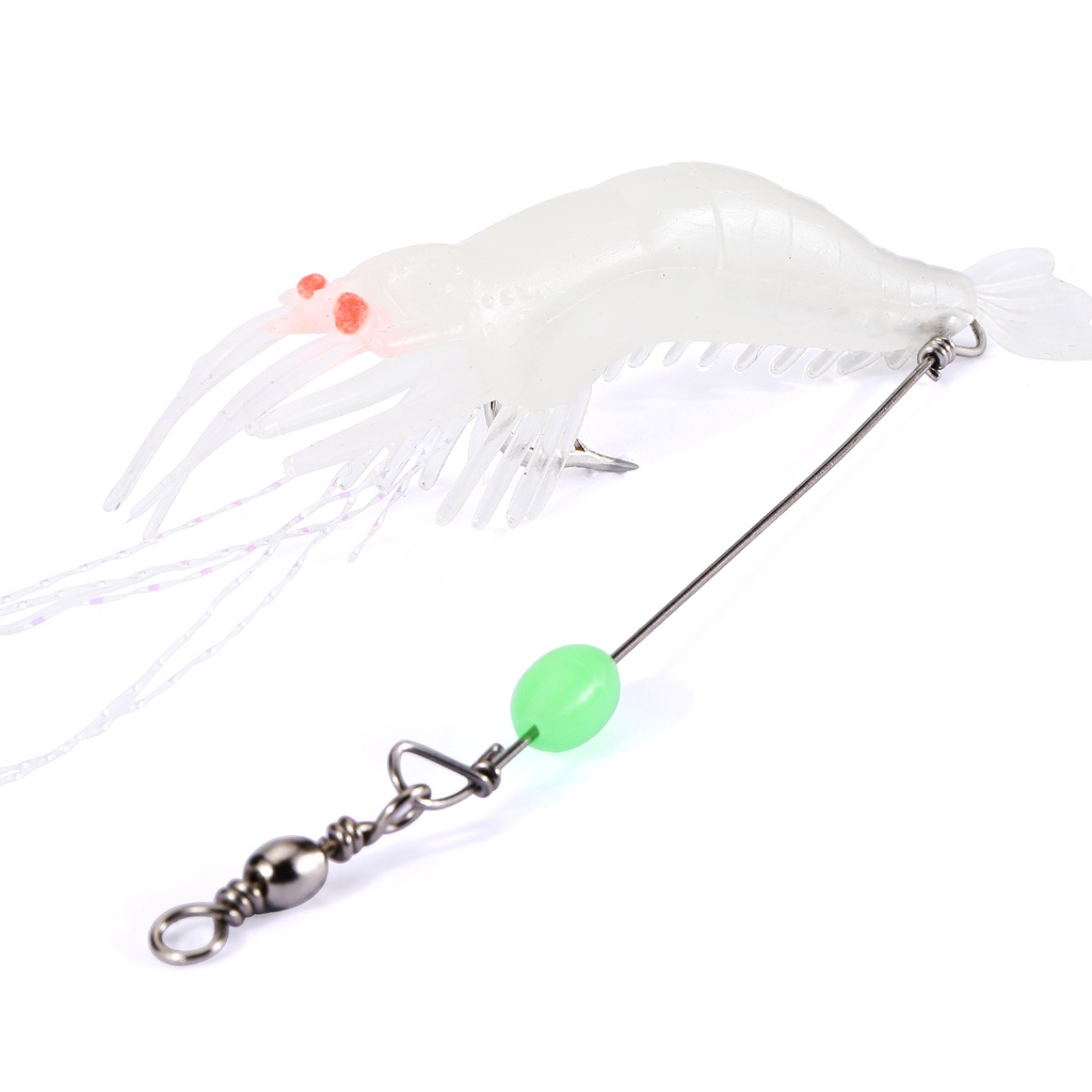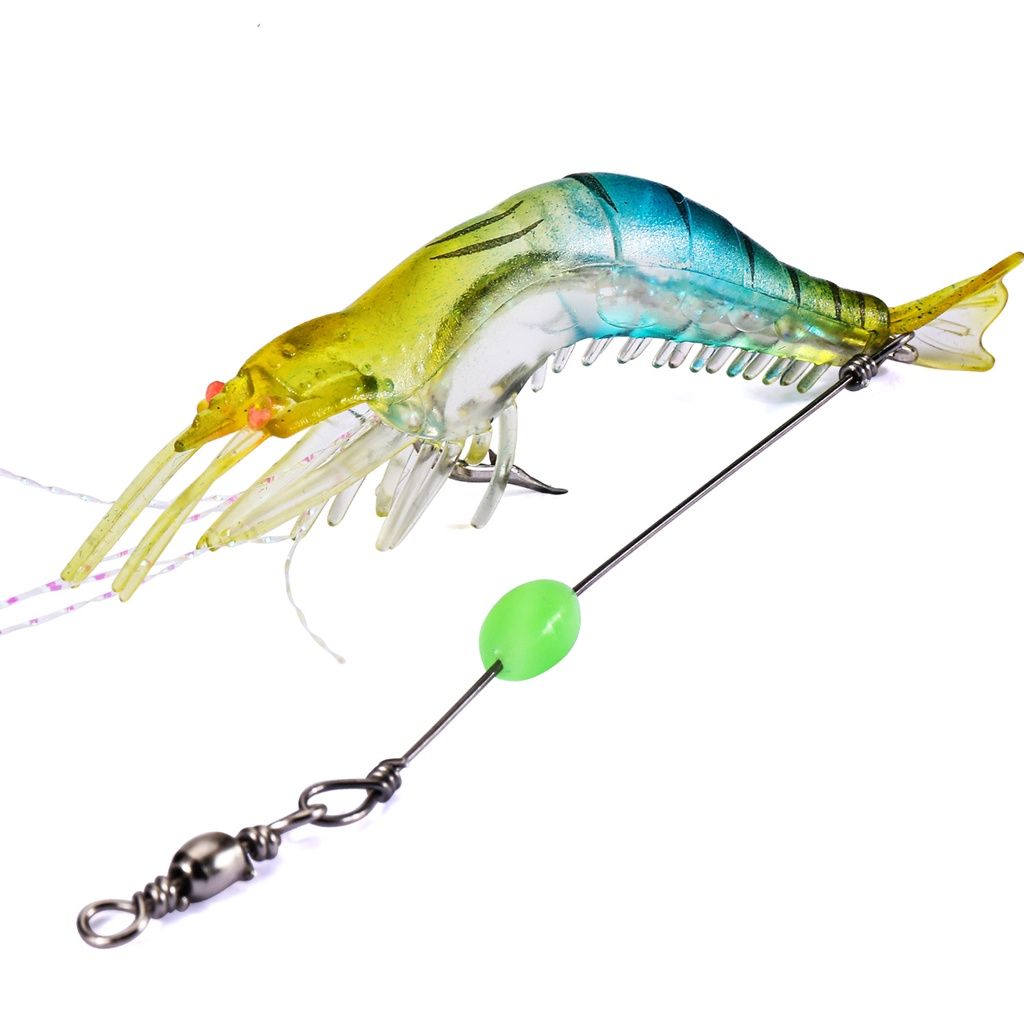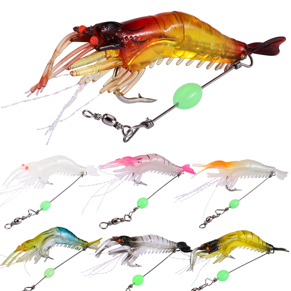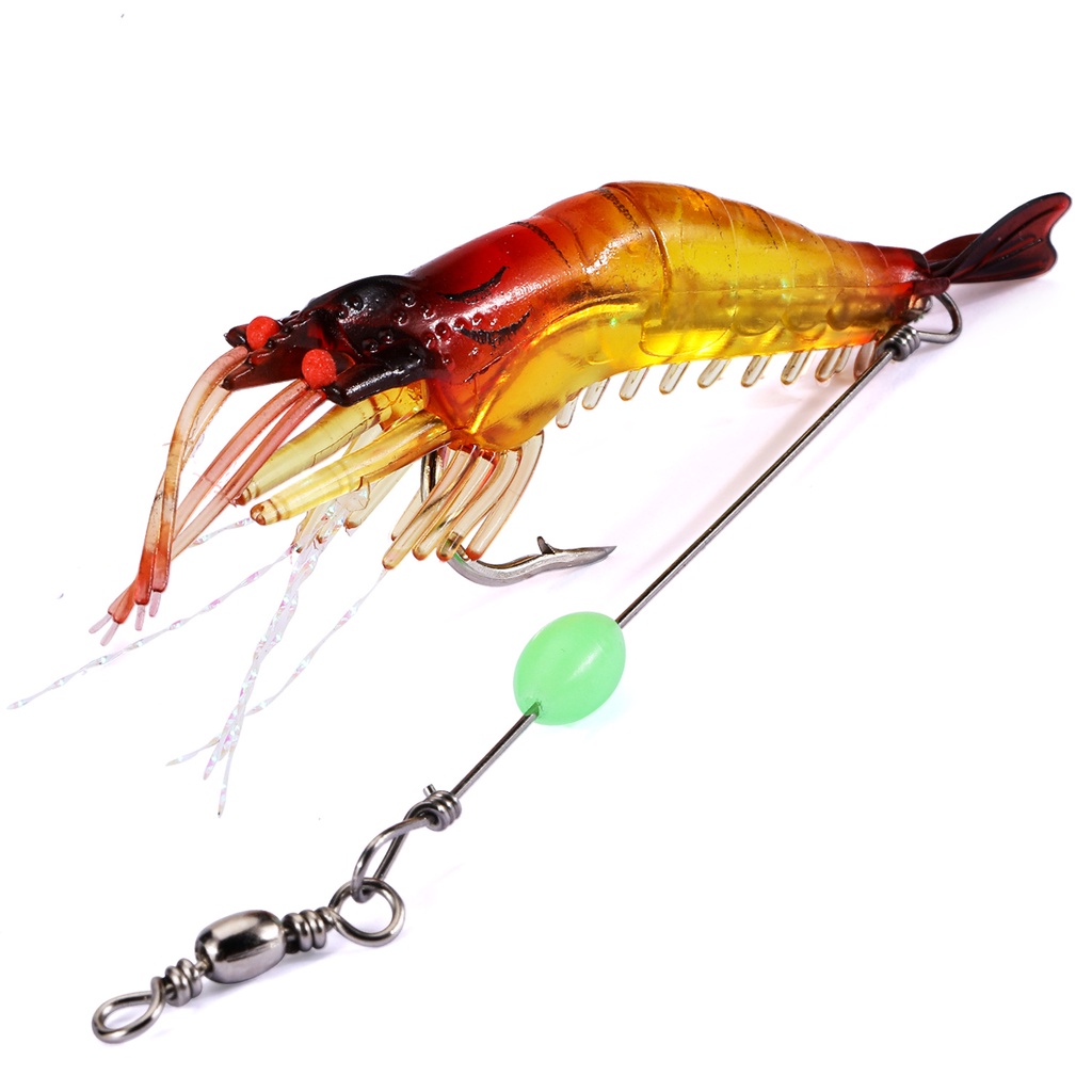 Sougyilang 3 Peças 9cm 7 Cores 6g Isca Macia Pesca Noturna De Camarão Luminosa Com Contas Giratórias Silicone Artificial