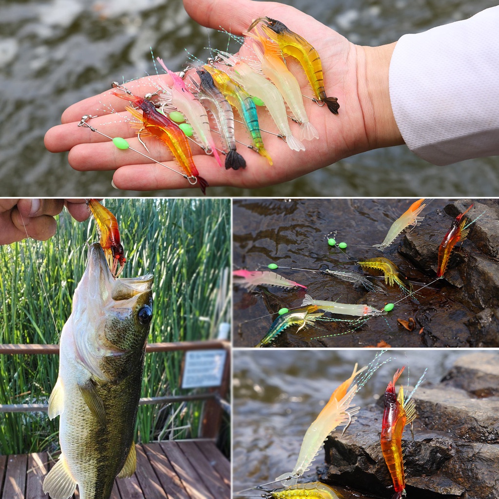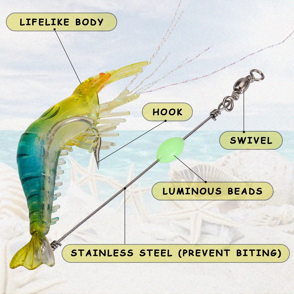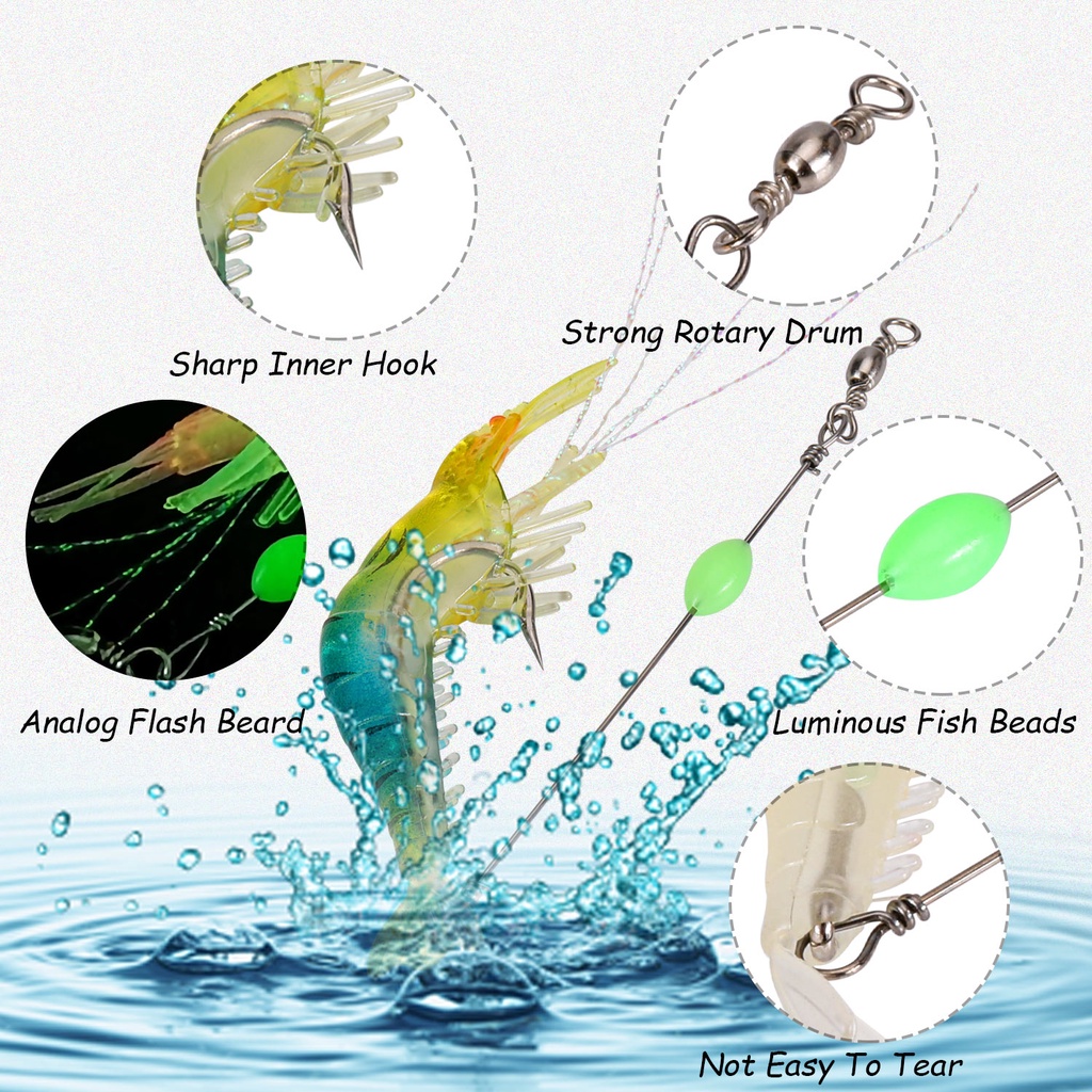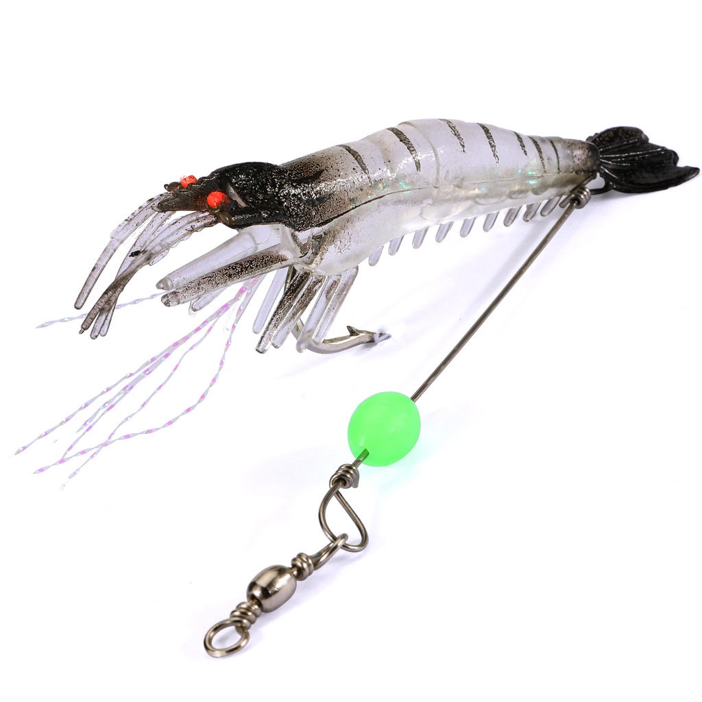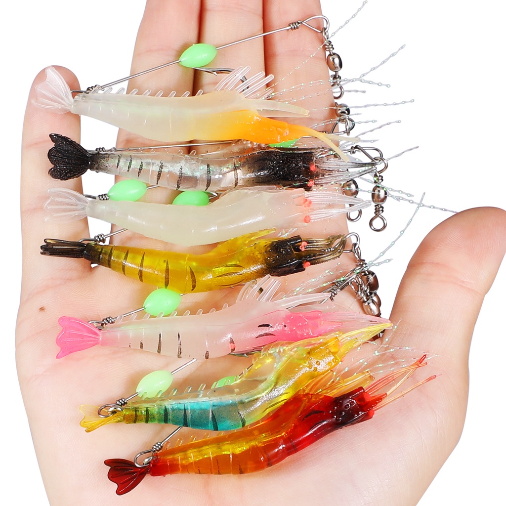 Sougyilang 3 Peças 9cm 7 Cores 6g Isca Macia Pesca Noturna De Camarão Luminosa Com Contas Giratórias Silicone Artificial