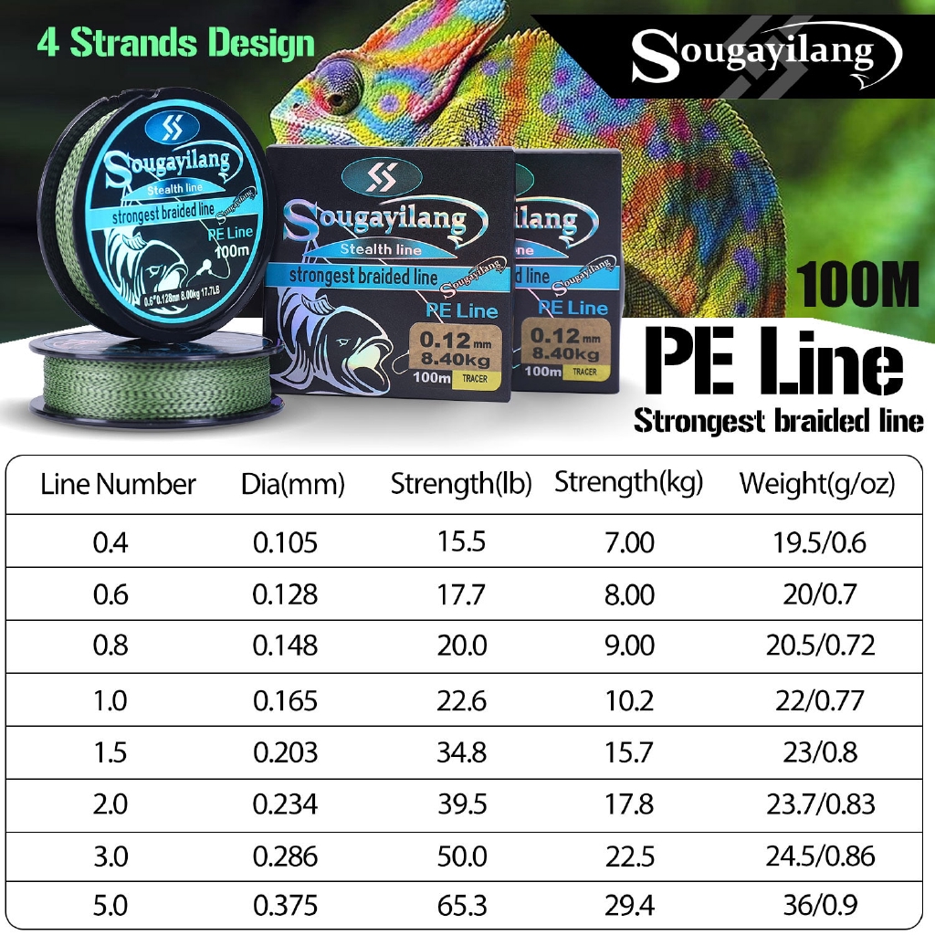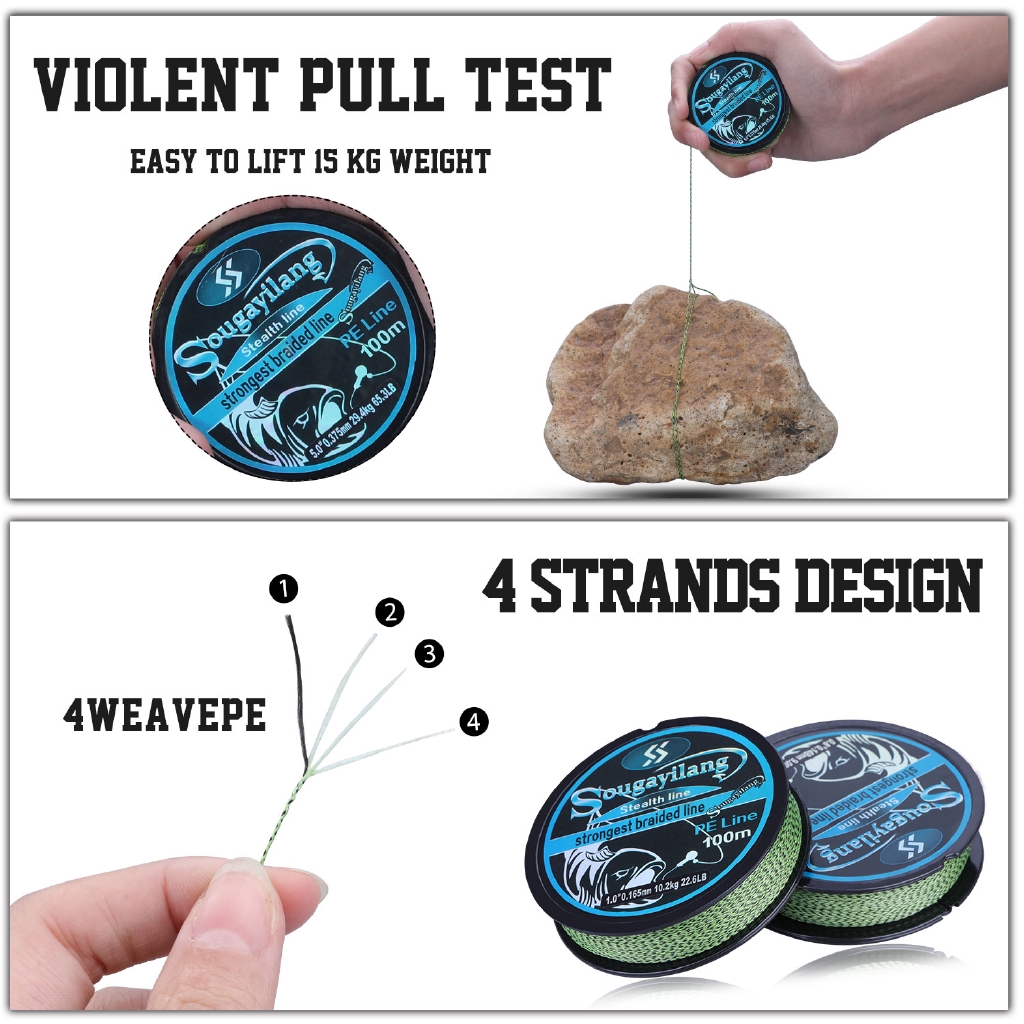 Linha de Pesca Multifilamento Sougayilang 100M 0.10mm-0.37mm Max Drag 7kg-29.4kg