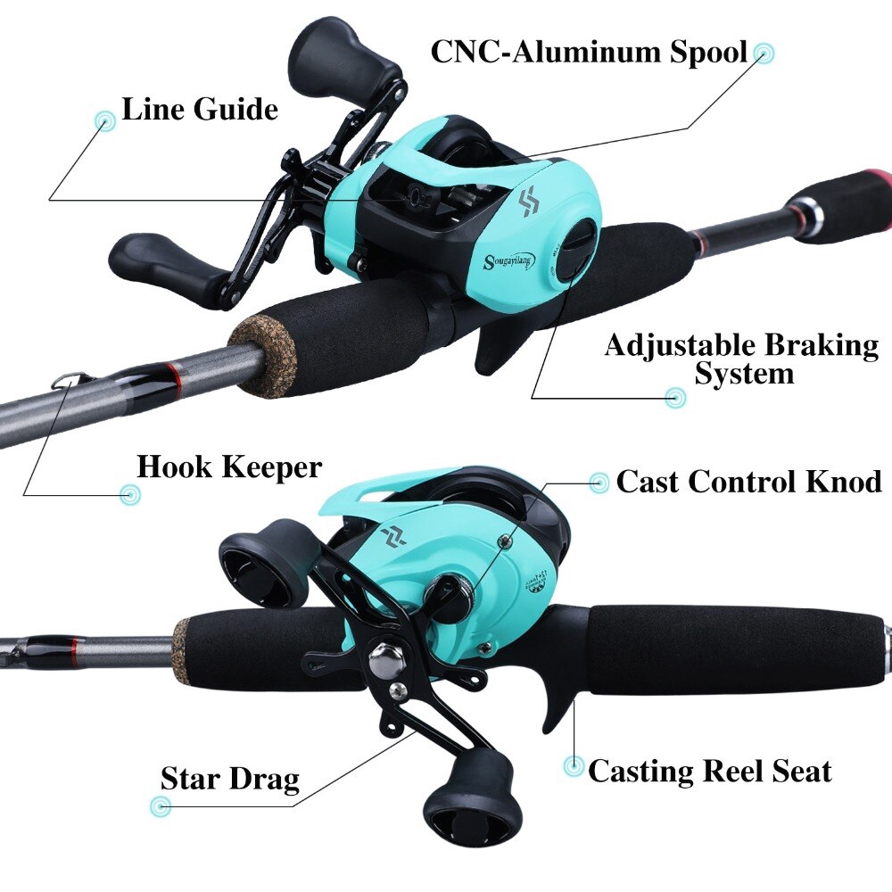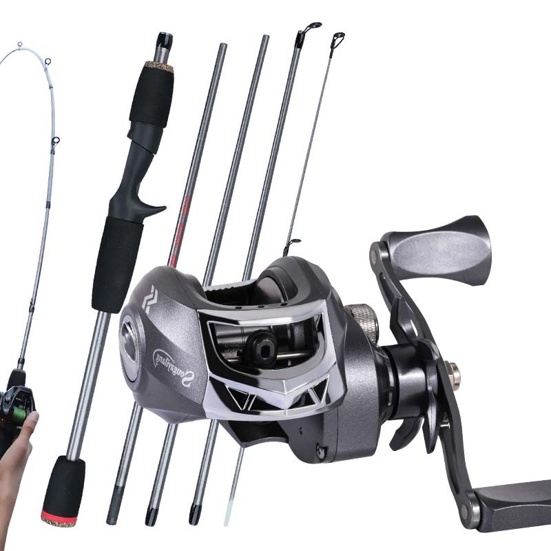 Vara de pesca com carretilha Sougayilang 1.8M 5 Sections 12+1 Ball Bearings 7.2:1 Gear Ratio Max Drag 10KG