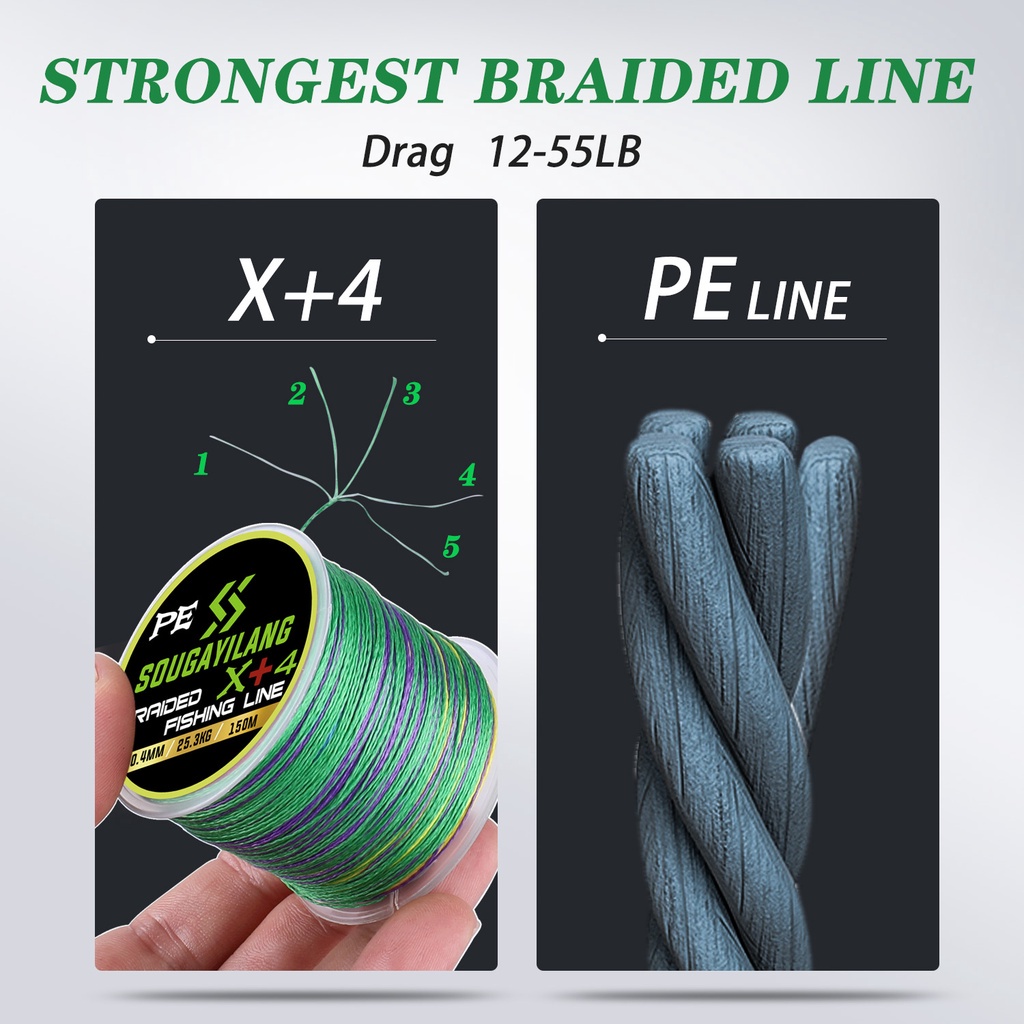 Sougayilang 150m Multifilamento 4 Fios/ 8 Fios Super Forte 12-100lb Pe Linha De Pesca Entrançada De Fibra