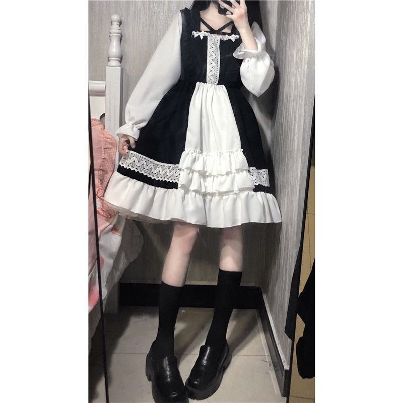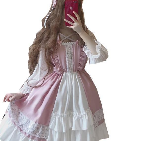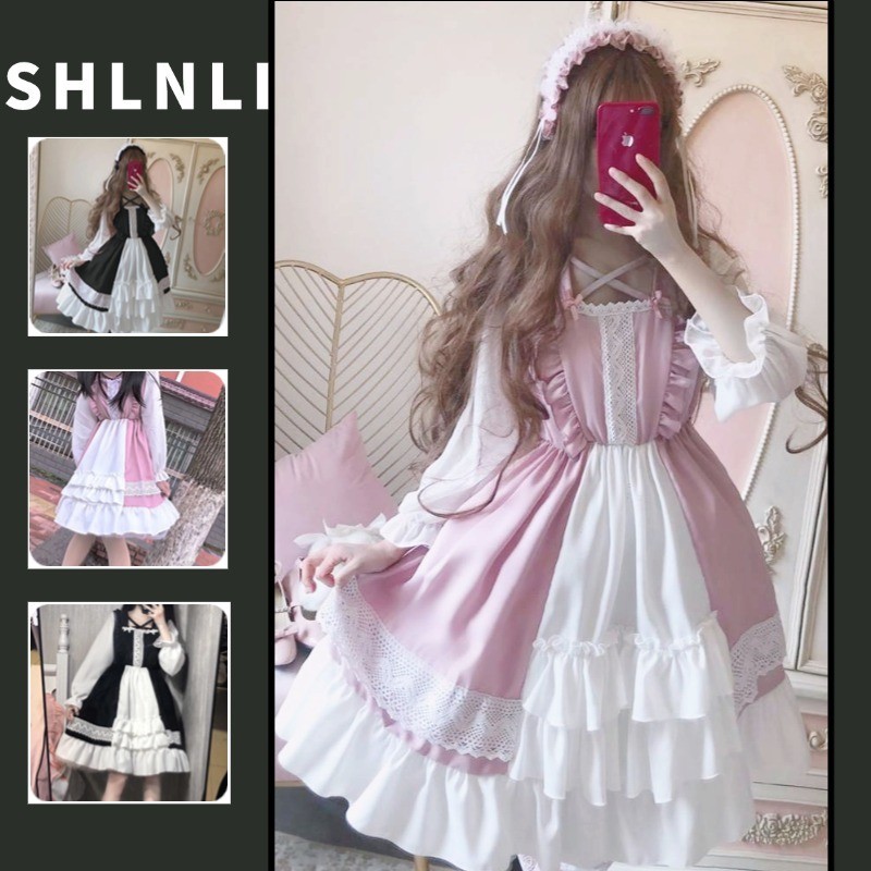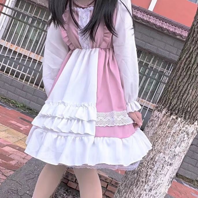 Vestido Lolita Bonitinho Japonês Para Estudantes De Manga Longa Mulheres De Primavera