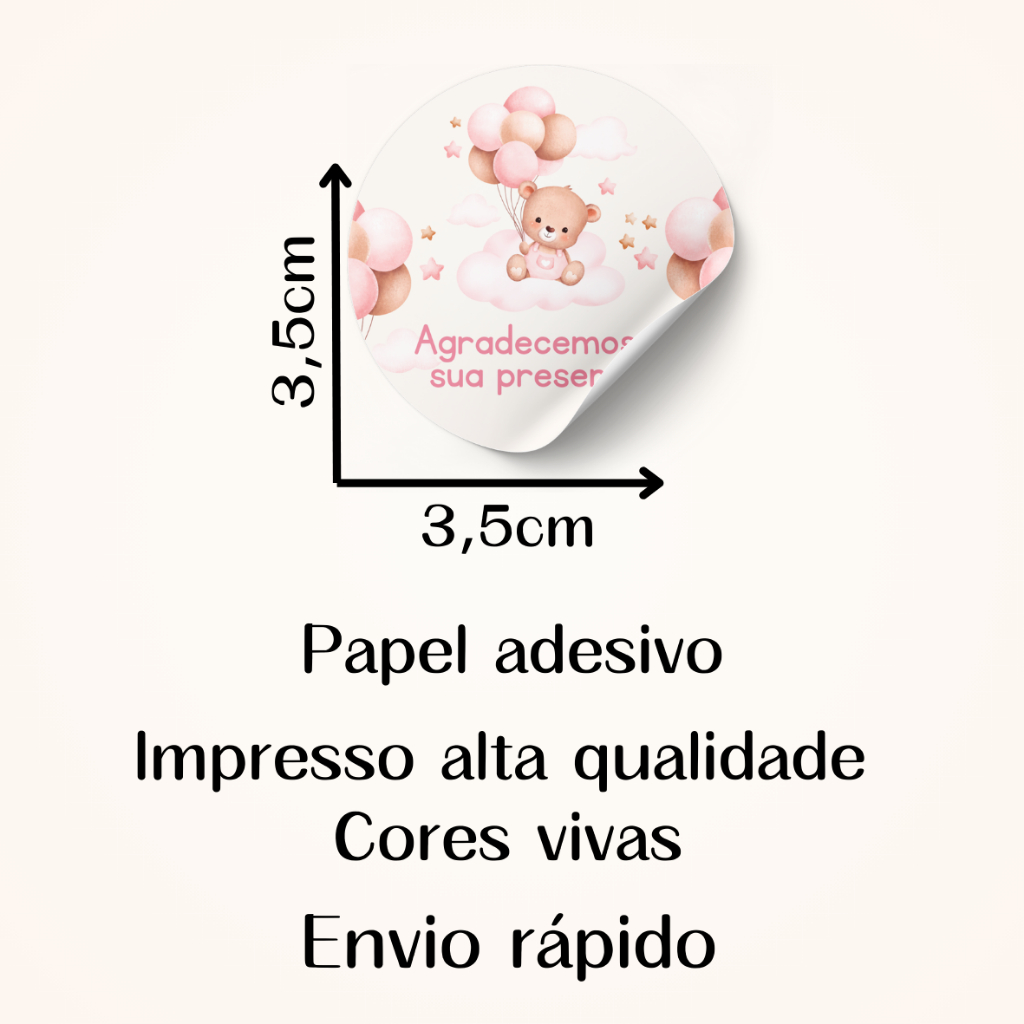 Adesivo para Chá Bebê ursinho marrom Lembrancinha 3,5cm