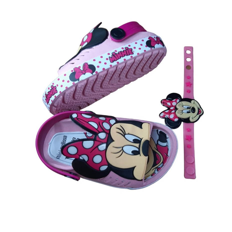 Sandalia,babuche infantil menina e menino Minnie Mickey + pulseira chinela infantil