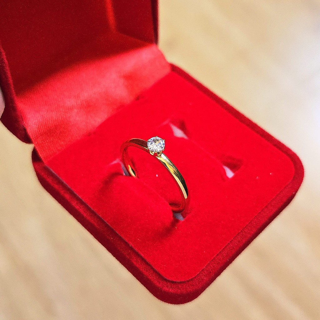 Anel Solitário com Pedra Zircônia de 4mm Banhado prata 925 e ouro 18k + Caixinha