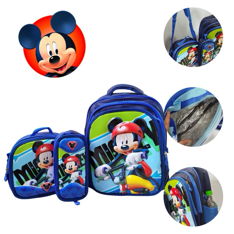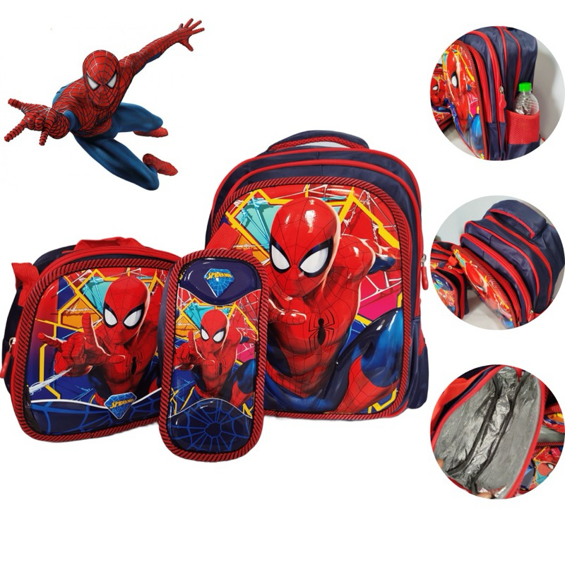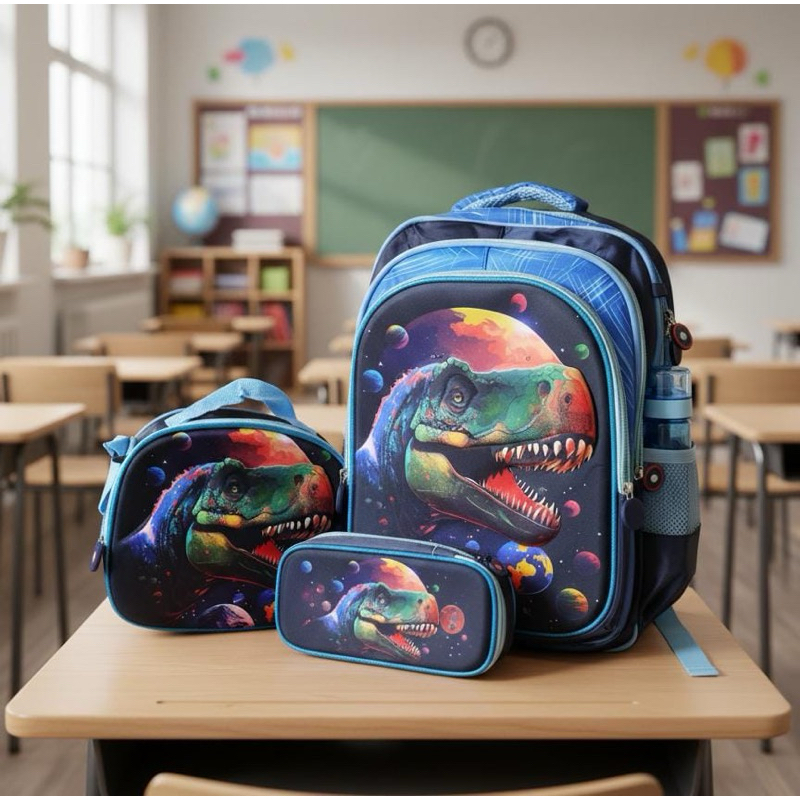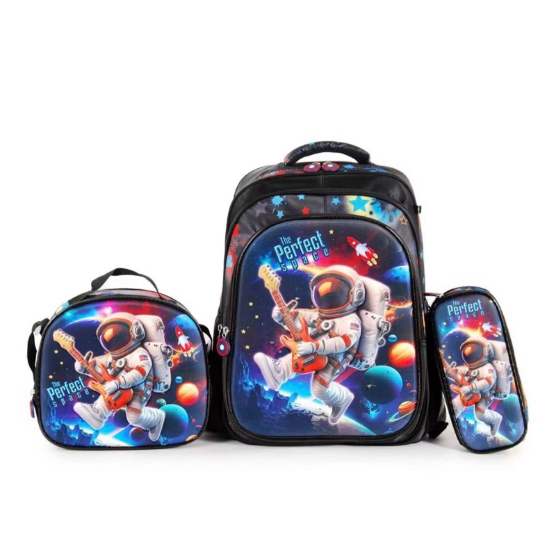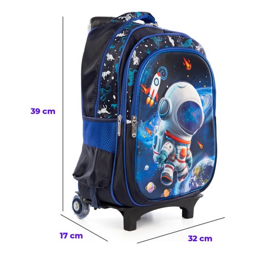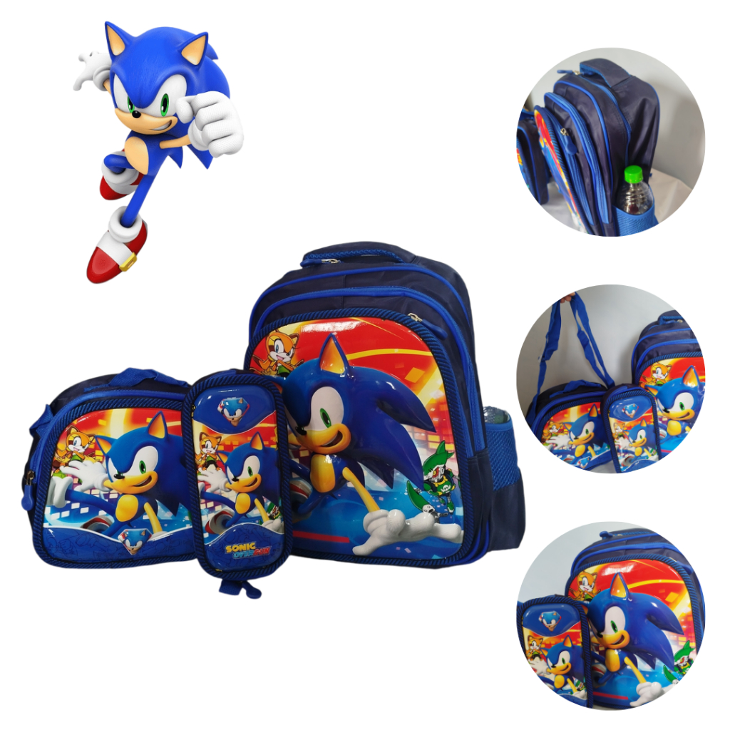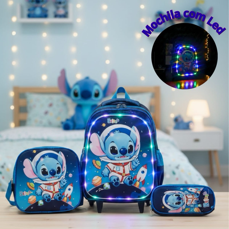 Kit 3pçs Mochila Lancheira Térmica Estojo Infantil Astronauta e Personagem Masculina sonic Pisca pisca com rodinha