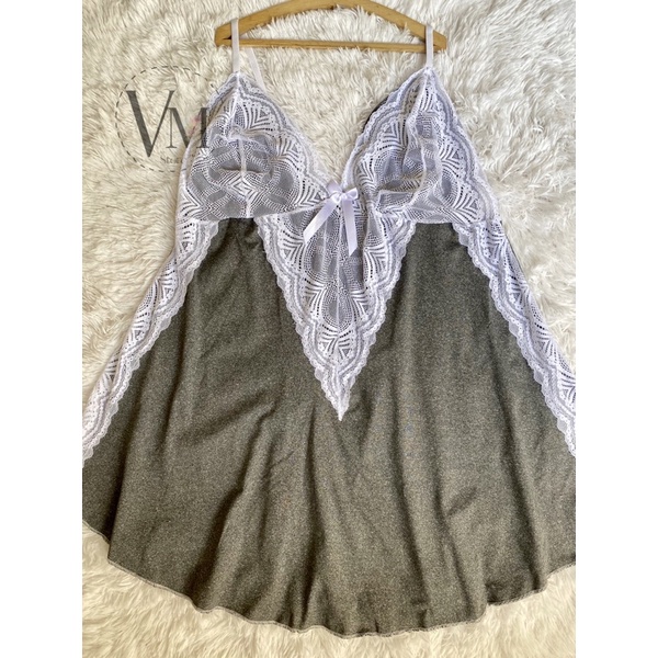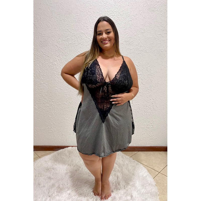 Camisola Plus Size Renda Sexy em Microfibra Mescla do tamanho 48 ao 58 Pijama Feminino Confortável