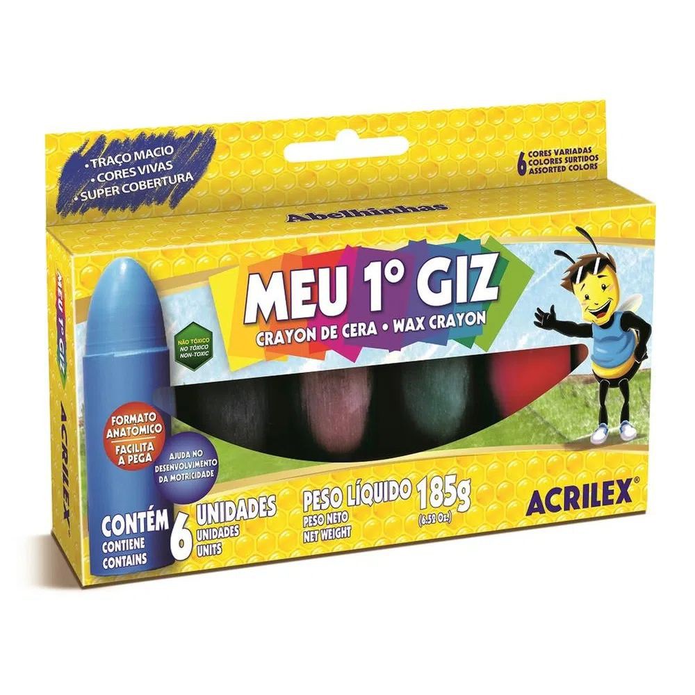 Giz de Cera - Meu Primeiro Giz 6 ou 12 Cores - Escolha o Tamanho - Acrilex