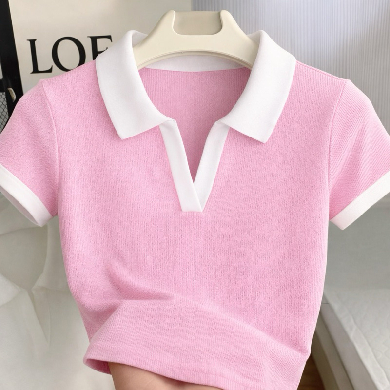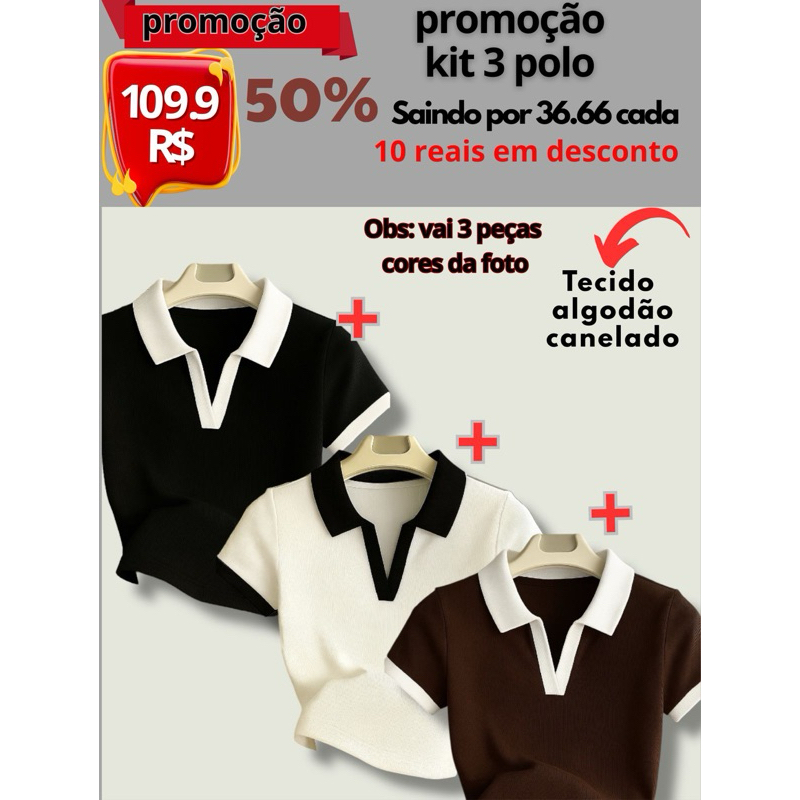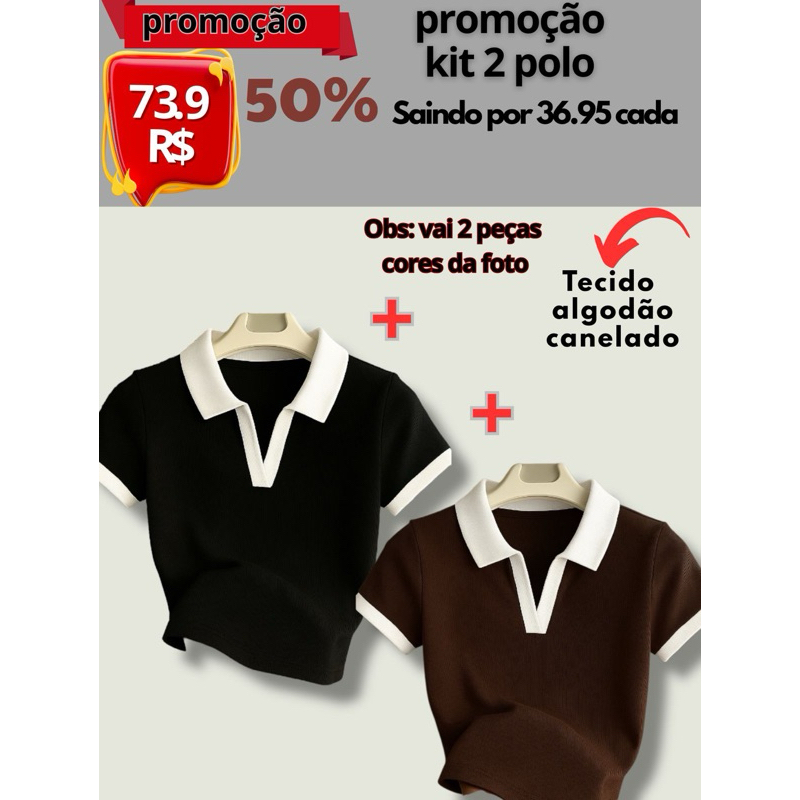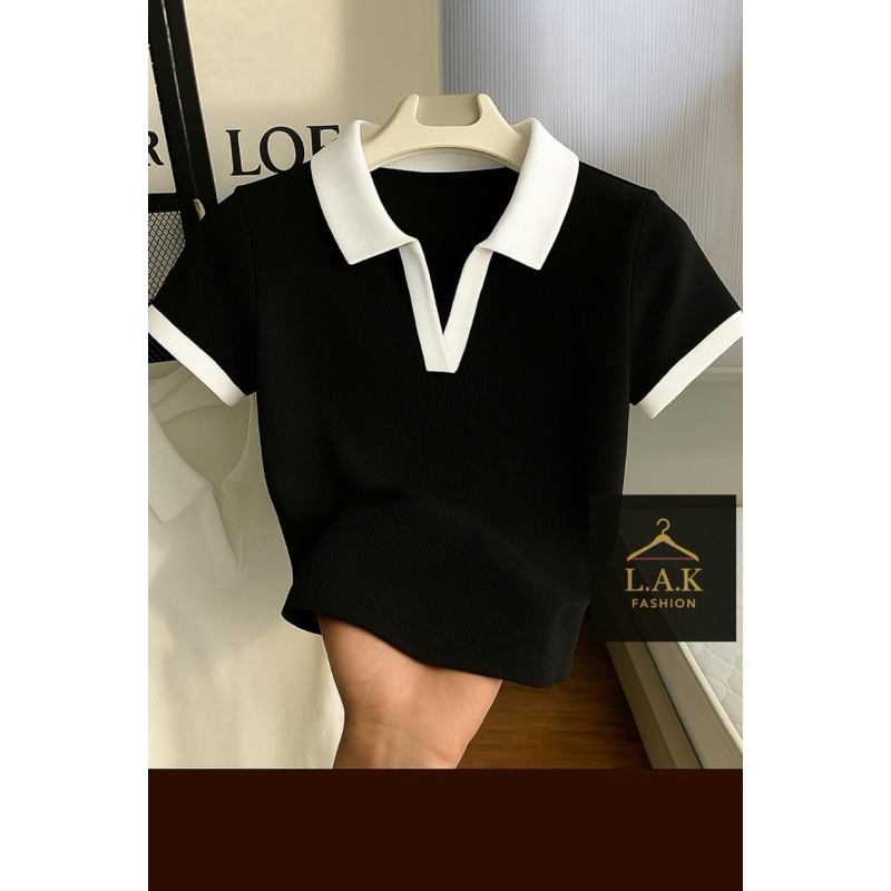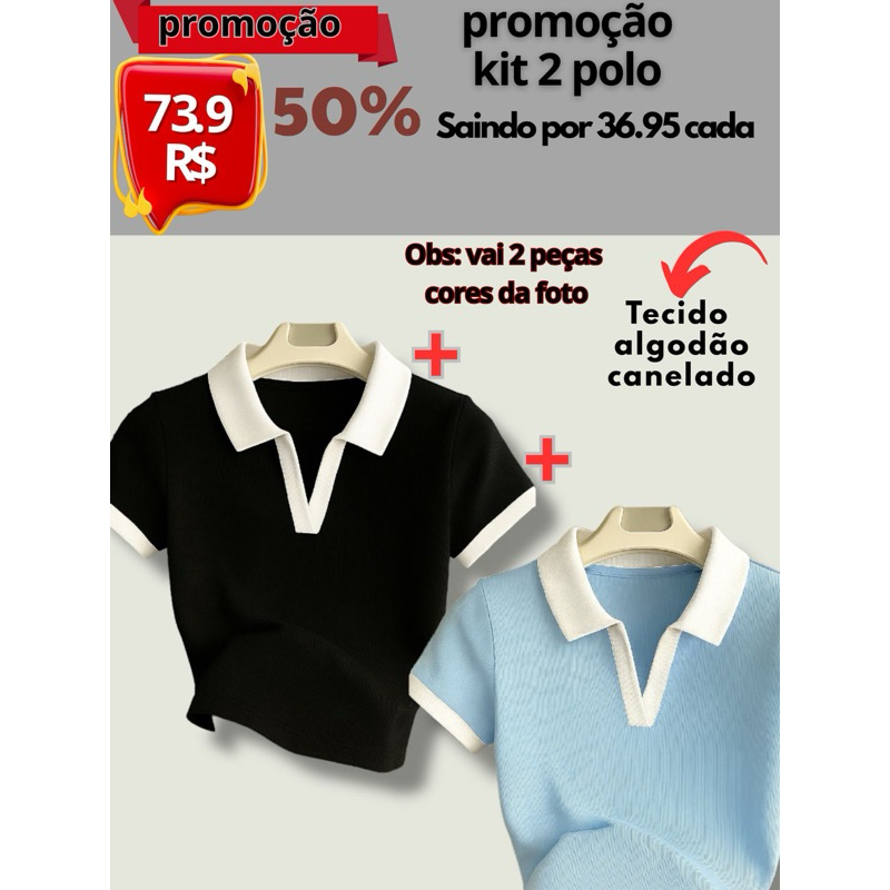 Blusa Polo Feminina Bicolor Manga Curta Ribana Premium Canelada Elegante