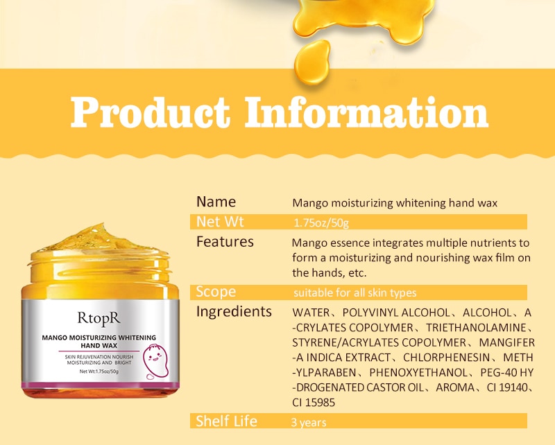 Rtopr Mango Máscara De Mãos / Cera Hidratante / Clareadora Para Mãos / Esfoliação / Calos / Anti-Idade / 50g