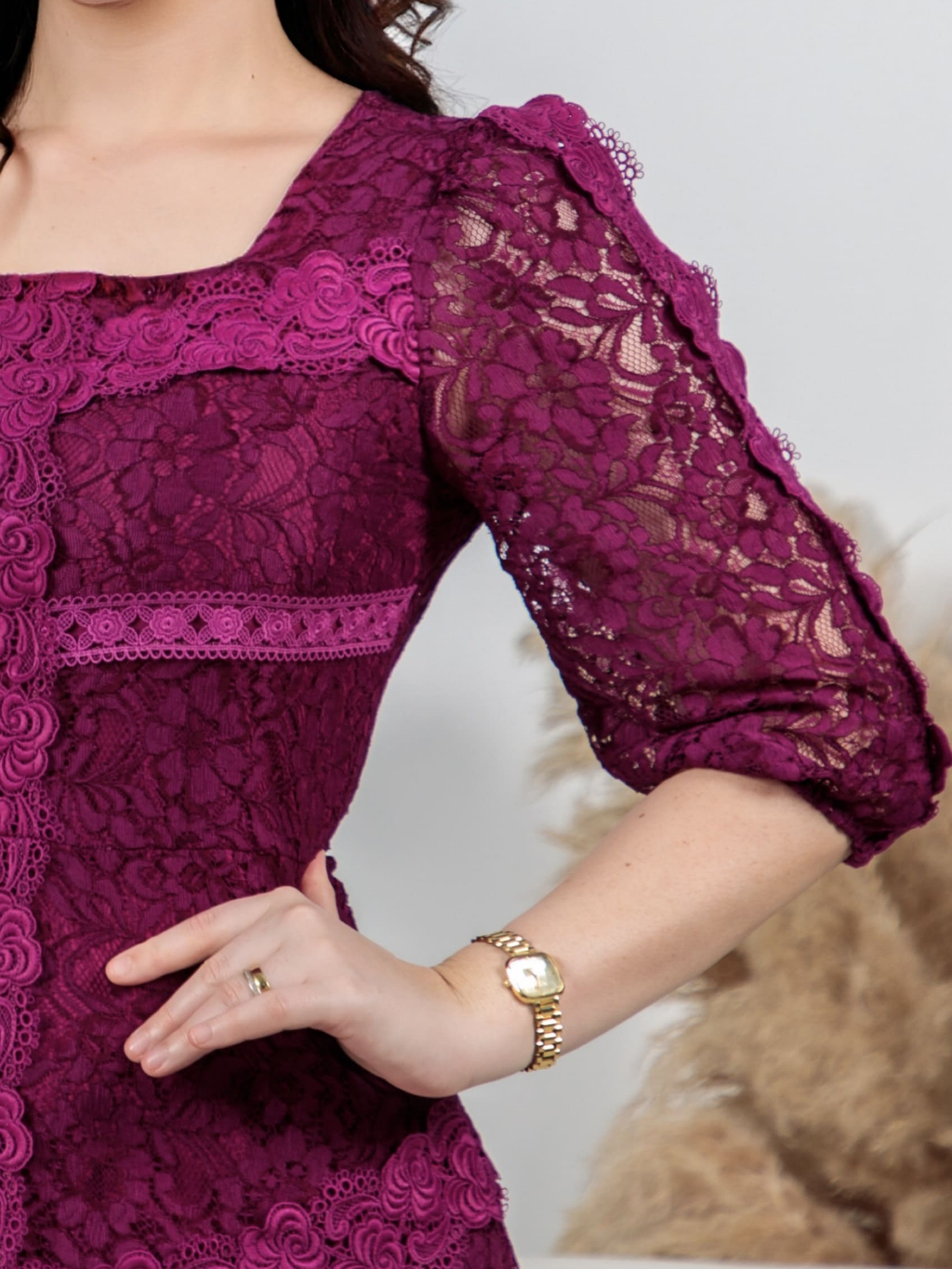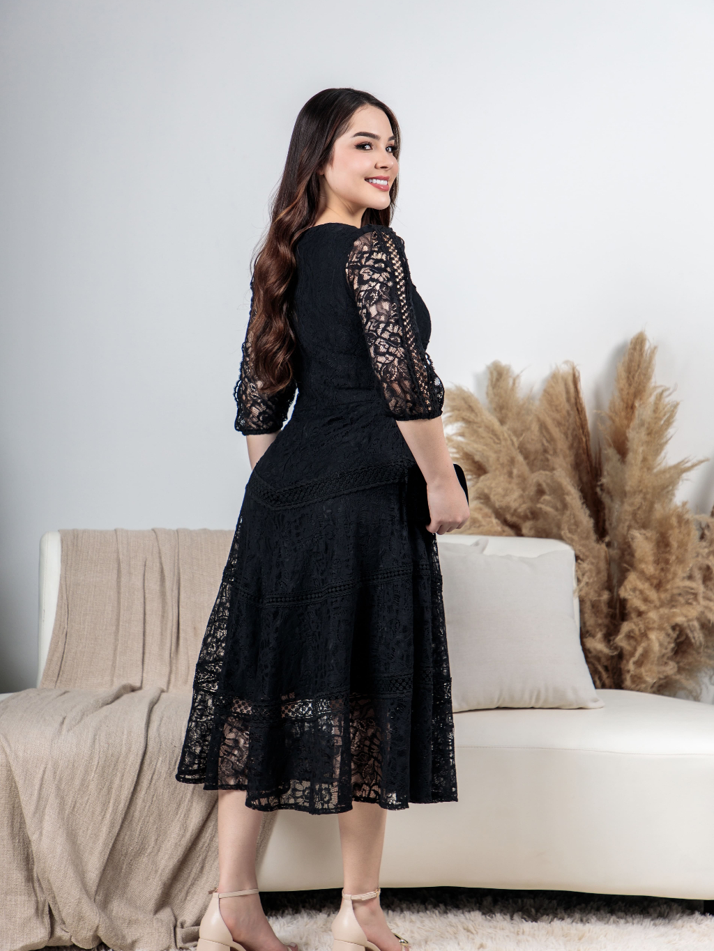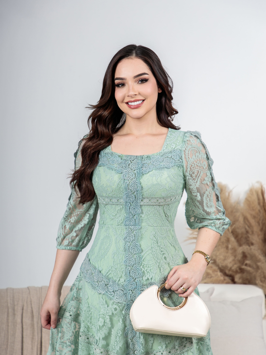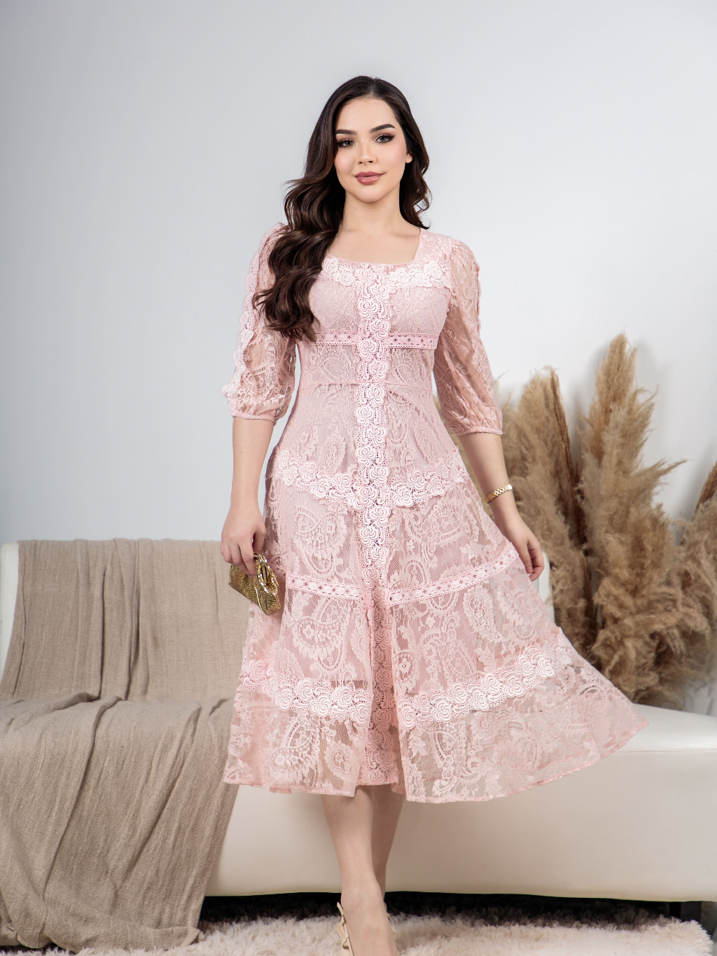 Vestido Midi Renda Algodão Elegante Luxo Forrado com Guipir e Zíper Invisível - Moda Evanélica Festas