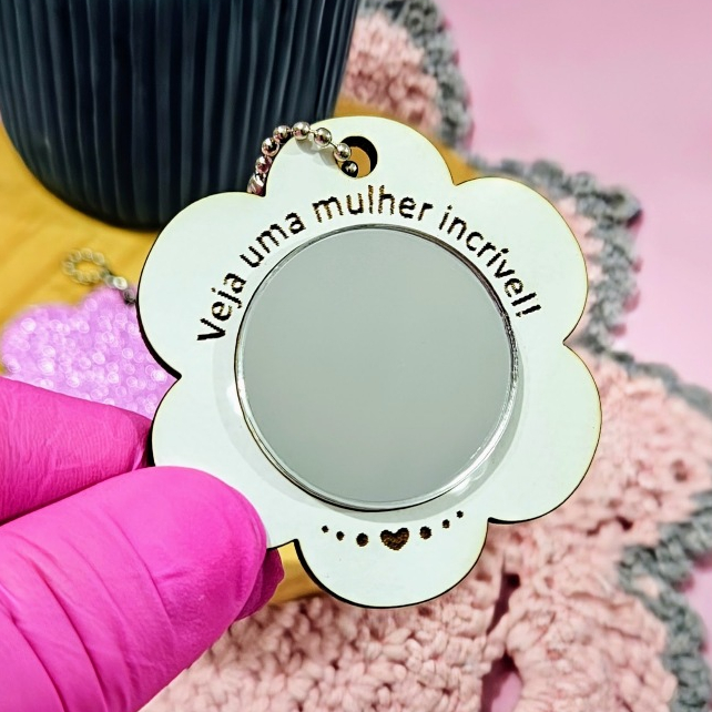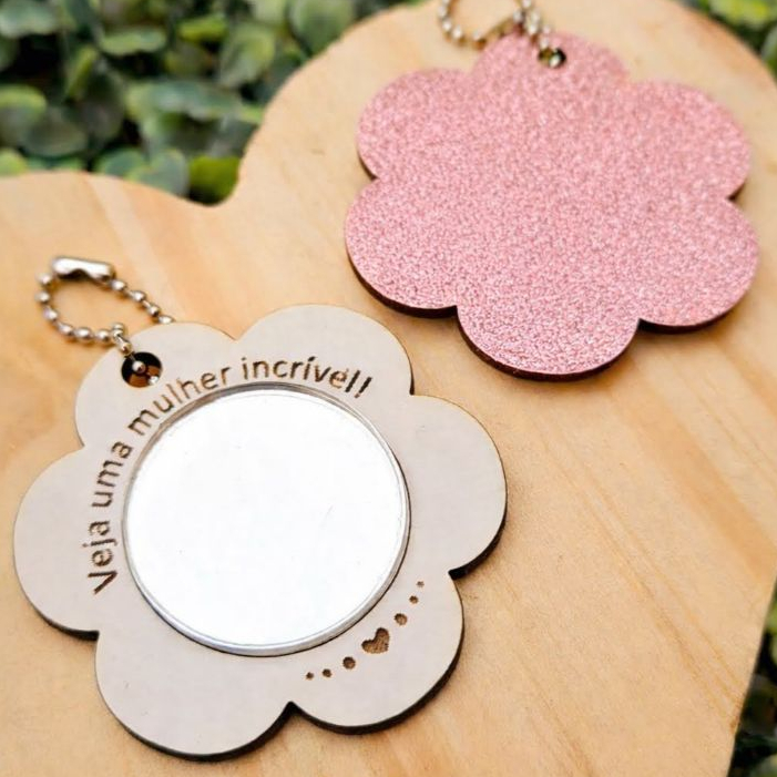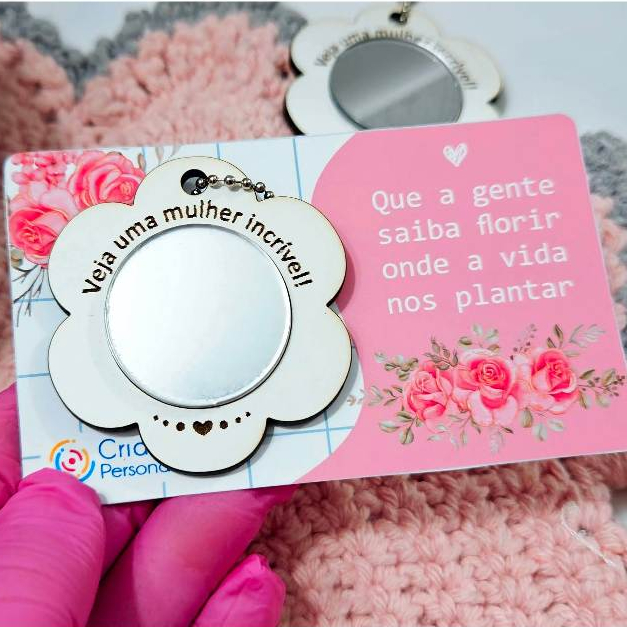 40 Mini Chaveiro Espelho Flor Dia Das Mães Mulheres em MDF E Card Personalizado
