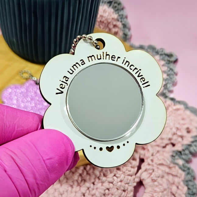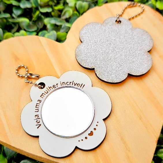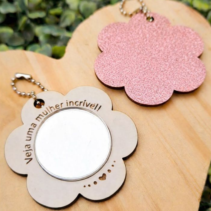 kit 10 Mini Chaveiro Espelho Flor Brinde Dia Das Mães Mulheres MDF
