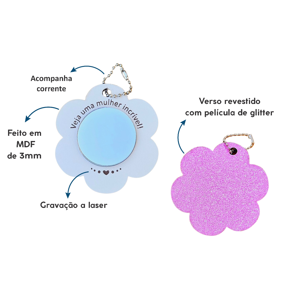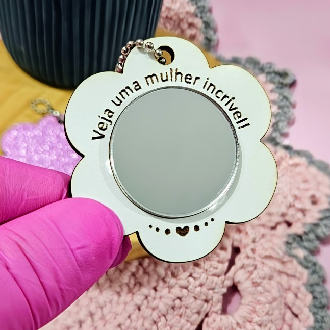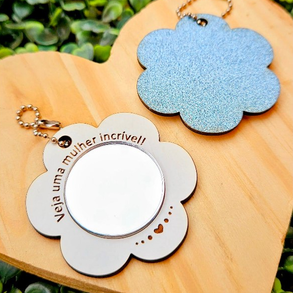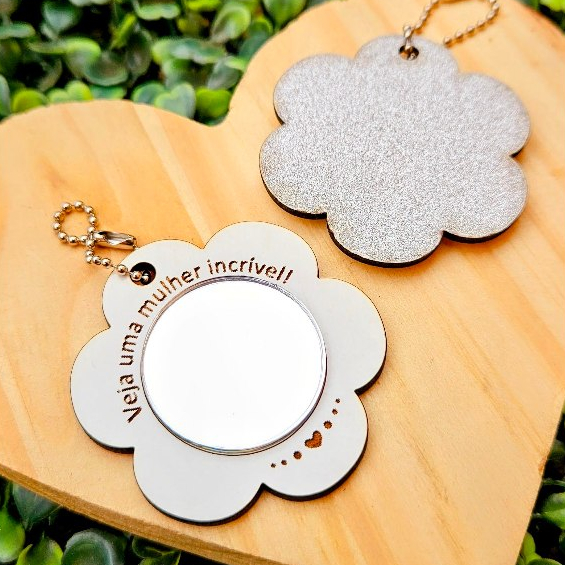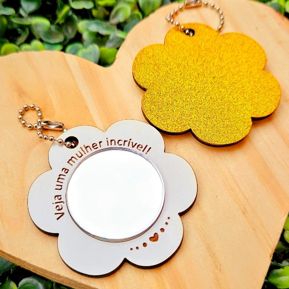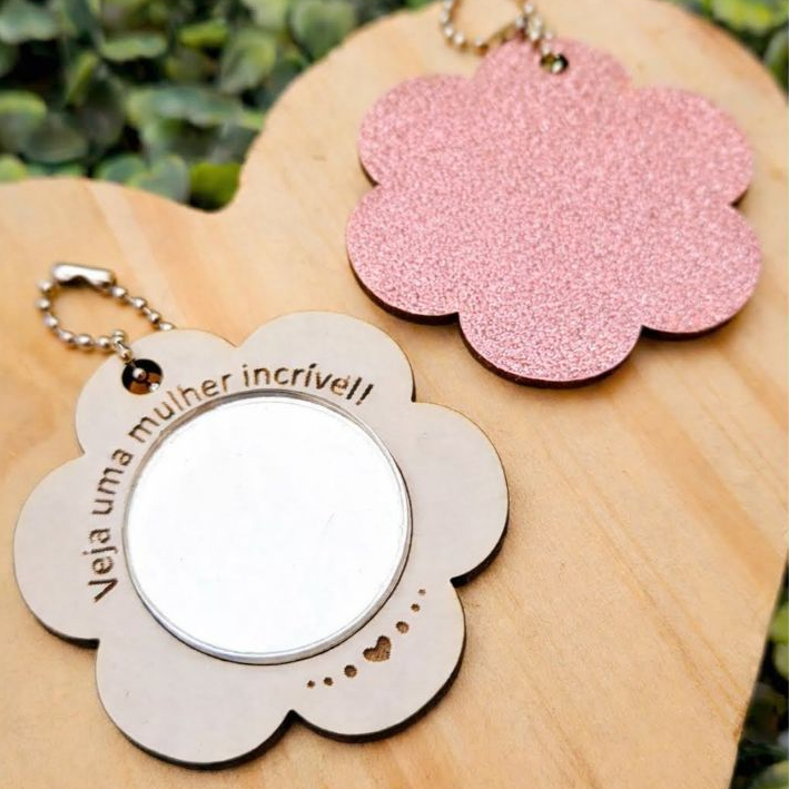 15 Mini Chaveiro Espelho Flor Dia Das Mães Mulheres em MDF E Card Personalizado