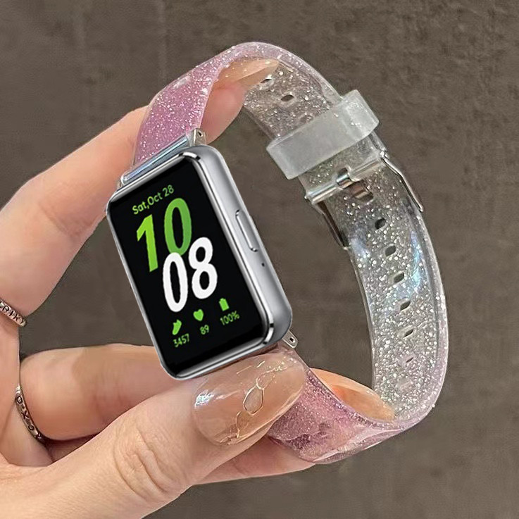 Bracelete De Silicone Transparente Esportivo Brilhante Pulseira Macia Para Samsung Galaxy FIT 3 (SM-R390) Inteligente Gradiente