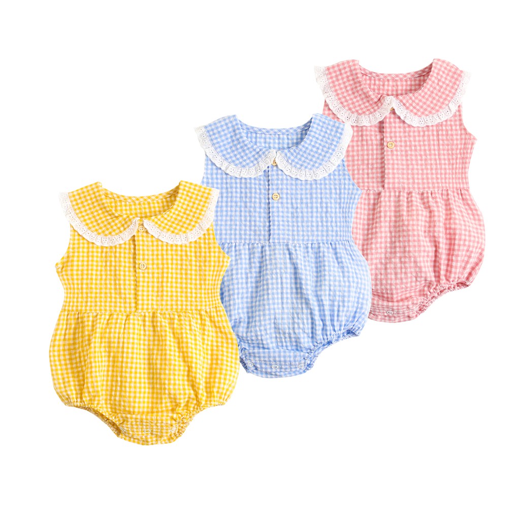 Princesa Do Bebê Meninas Bodysuits Bonito Xadrez Criança Roupas De Verão Bodysuit De Algodão Para Crianças Menina Moda