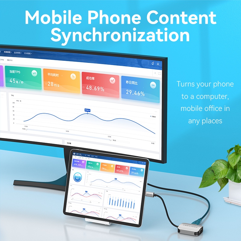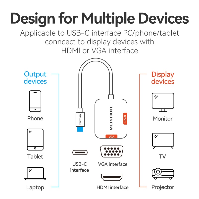Vention Conversor USB C Para HDMI VGA 3.0 2 Em 1 4K 1080P Tipo Adaptador De Telefone TV Monitor Projetor Macbook