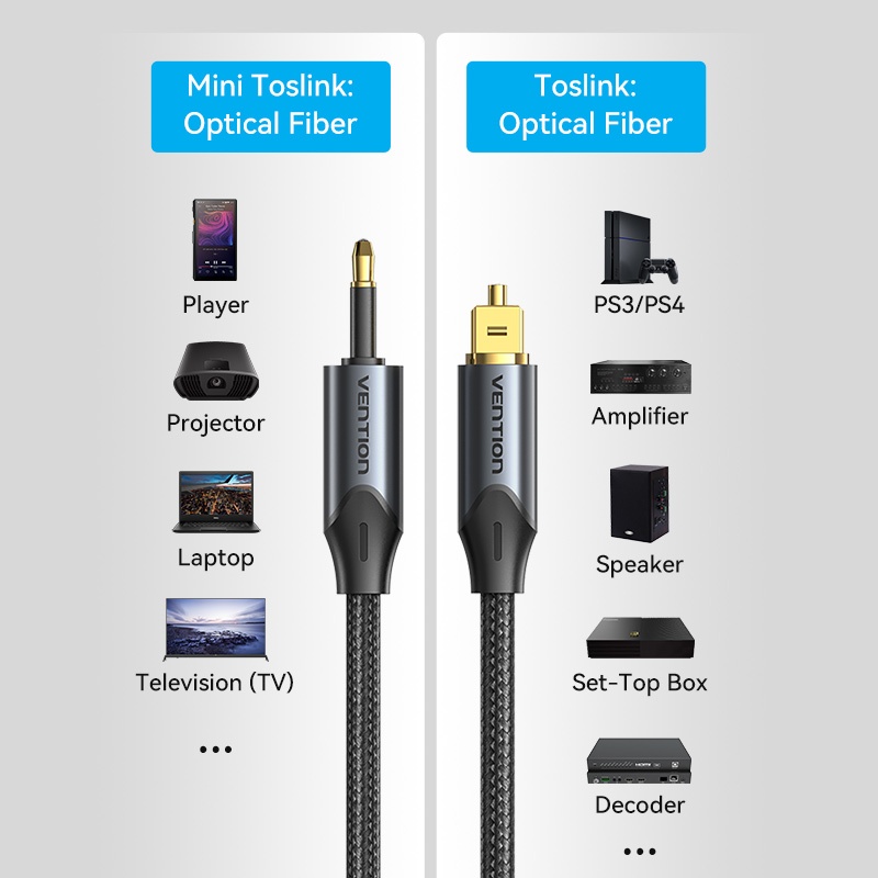 Vention Porta Quadrada De Fibra Óptica Para Cabo De Áudio De Redonda De 3.5 Mm Hi-Fi Toslink Com Suporte Dolby DTS PCM E