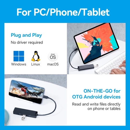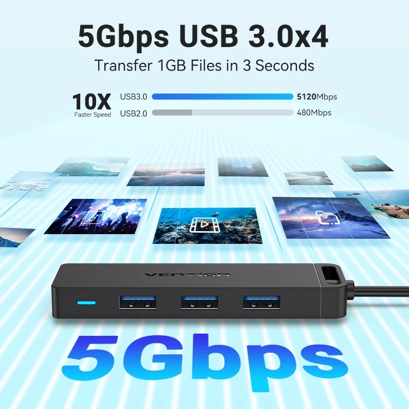 Vention USB C Hub 3.0 5 Gbps 4 Portas Type Adaptador Divisor Portátil Compatível Para Macbook Air Pro Samsung Galaxy S9