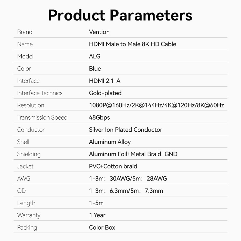 Venção HDMI 2.1 Cabo HD 8K Atualização Tecnologia Dinâmica HDR 48Gbps Macho Para 8K