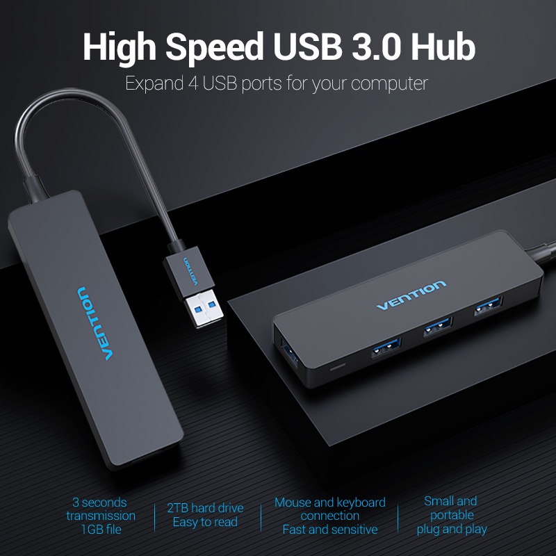 VENTION HUB USB 3.0 5 Gbps Compatível Com USB 2.0/1.1 Suporta a função OTG Preto 4 Portas