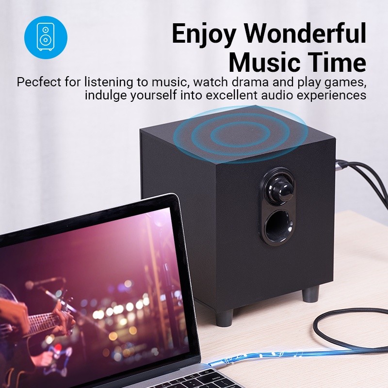 Cabo De Áudio Vention TRS 3.5 Mm Macho/TS 6.5 Conecta Telefone PC