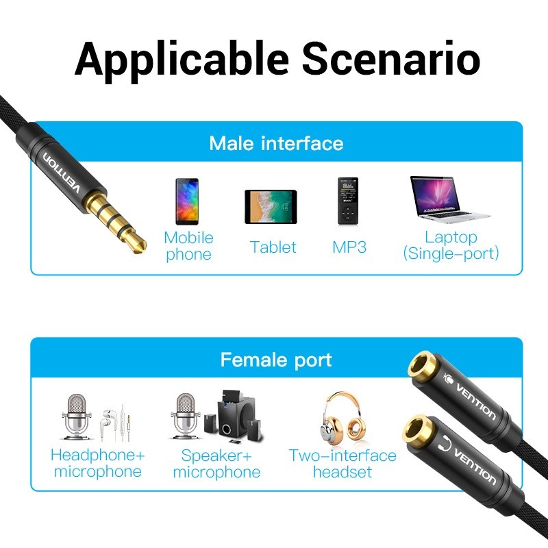 Vention Divisor De Áudio AUX Cable Jack Macho Para Fêmea Mic Y Splitter Cabo Adaptador Fone De Ouvido (3.5 Mm)