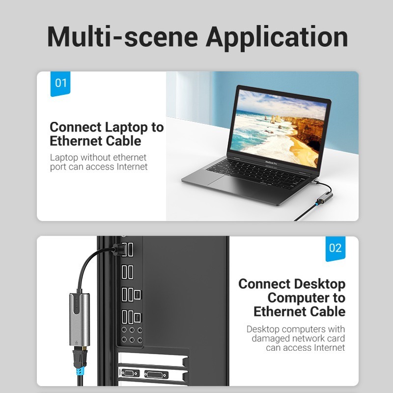 Vention USB 3.0 2.0 C Para Adaptador Gigabit Ethernet Rj45 Placa De Rede 1000mbps Computador Laptop