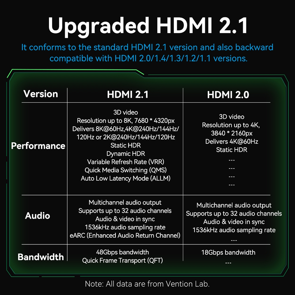 Vention 8K HDMI Cabo 48Gbps De Alta Velocidade 8K @ 60Hz HDR Suporte Dinâmico Para Vídeo Com Efeito 3D