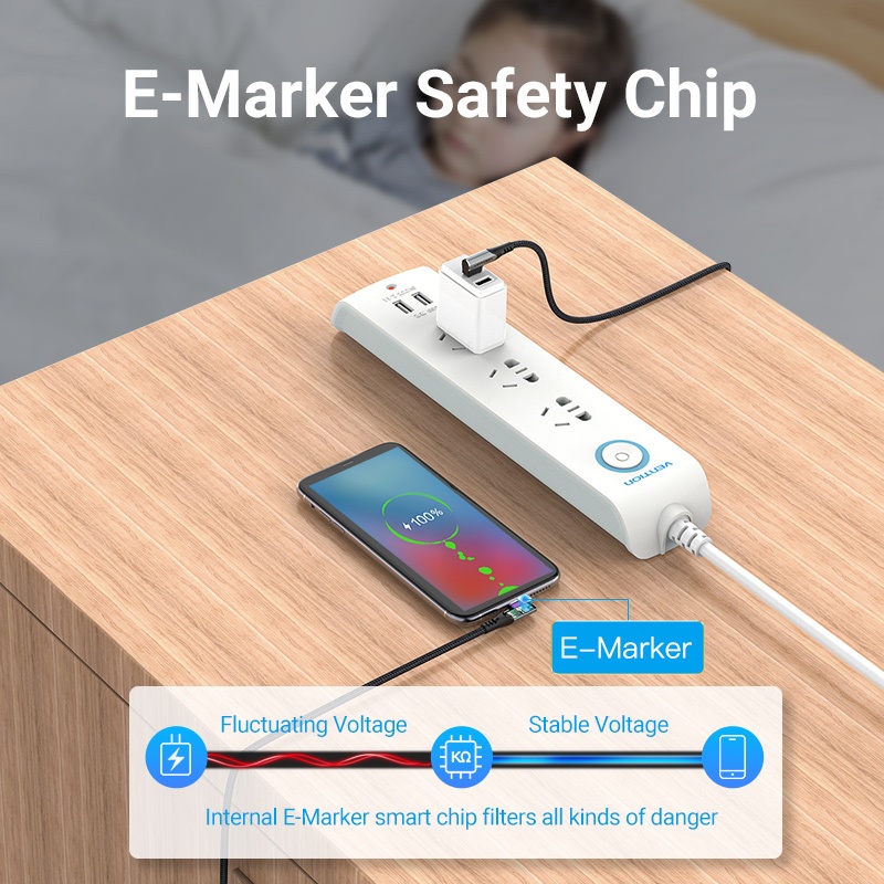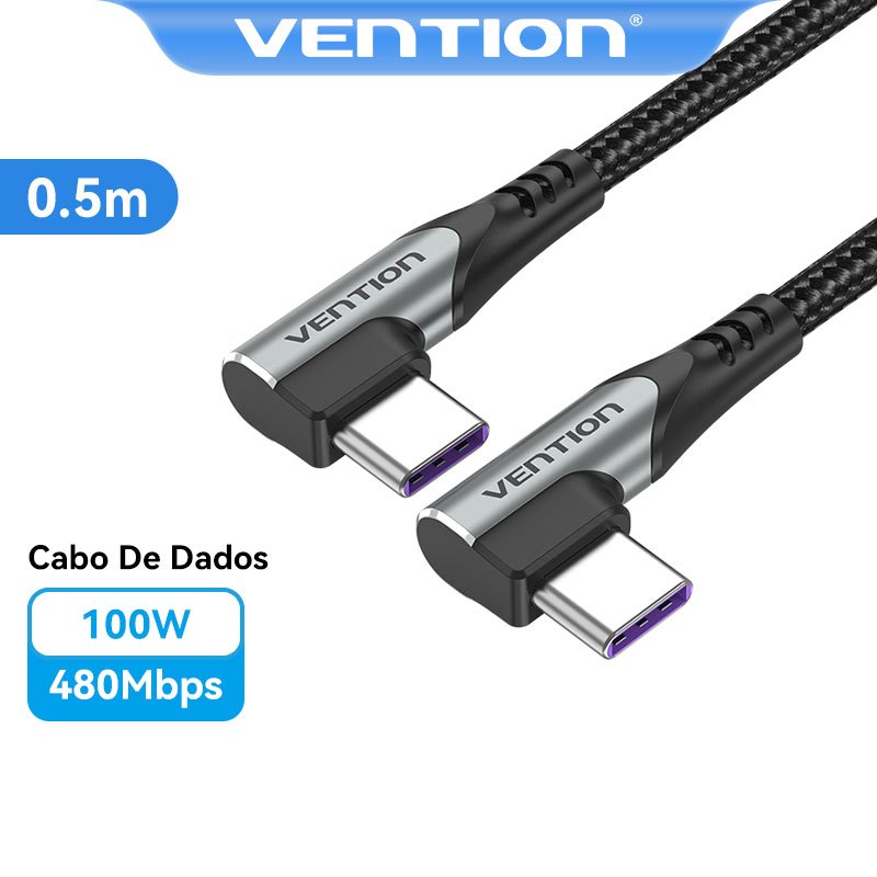 Vention Tipo C Dois ângulos Direitos Cabo de carga rápida PD 100W 5A alta velocidade 480 Mbps Cabo de dados