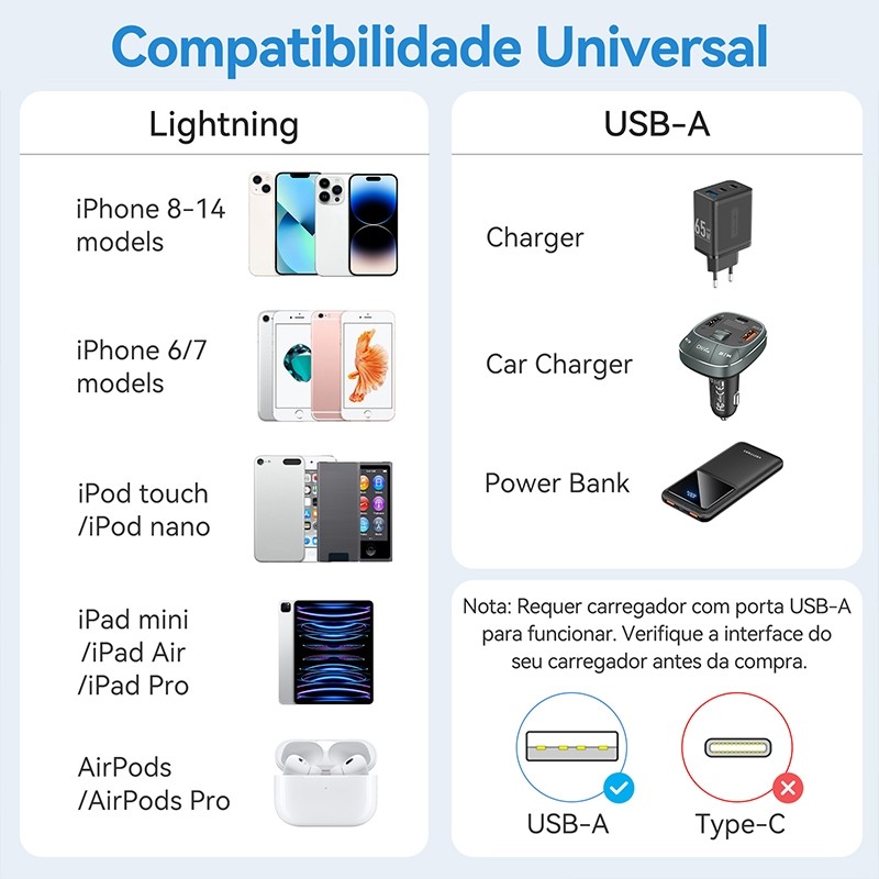 Vention Cabo USB Para iPhone 14 13 12 11 Pro Max 2.4A Relâmpago De Carregamento Rápido iPad Mini Carregador De Telefone
