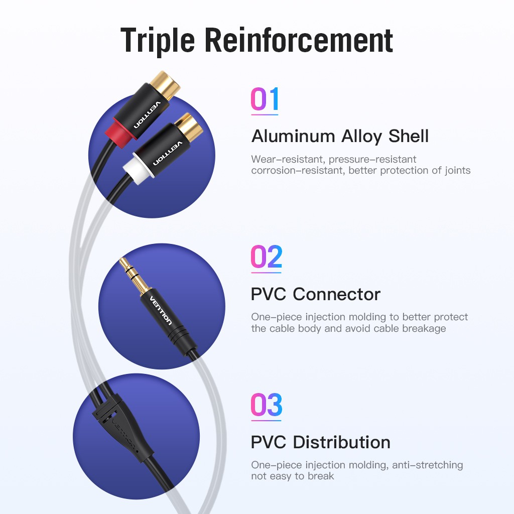Vention 3.5mm Para 2 Rca Macho Para Fêmea Cabo Aux para os ouvidos os sistemas domésticos de áudio de falantes