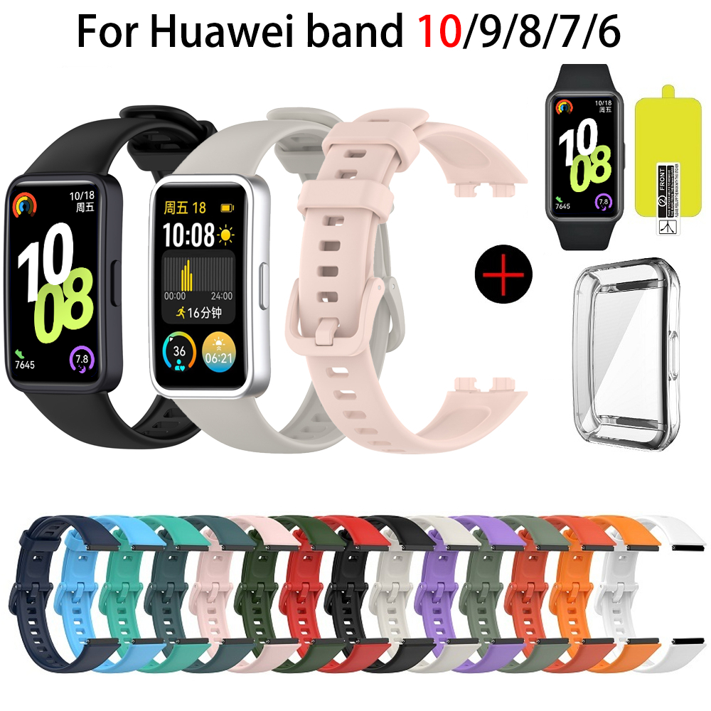 Pulseira De Silicone + Capa Para Huawei Band 10 9 8 7 NFC Honor 7/6/6pro Macio À Prova Dwaterproof Água Esporte Smartwat