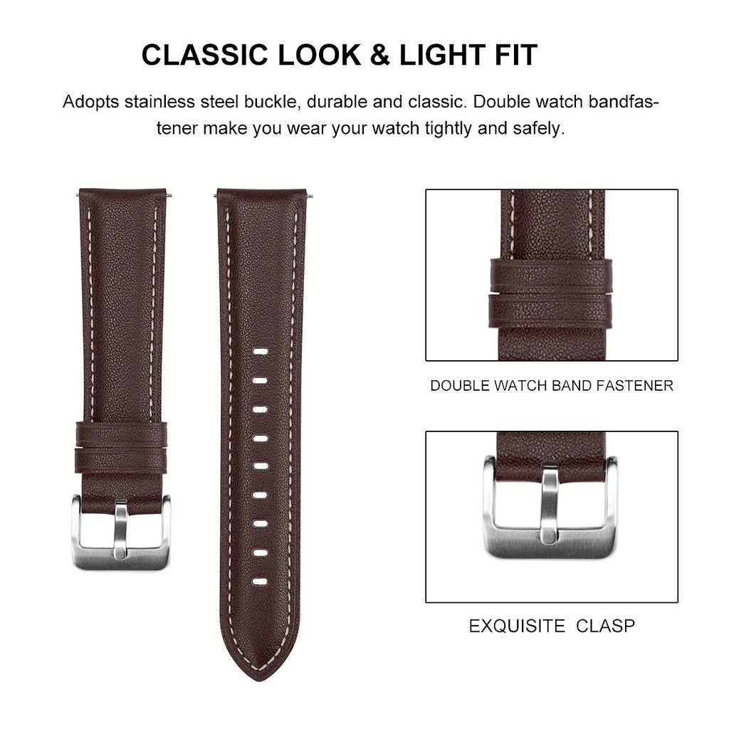 Pulseira Em Couro 20mm Para Smart Watch Samsung Galaxy Active 2/Watch4/Watch5/Watch6/Watch7