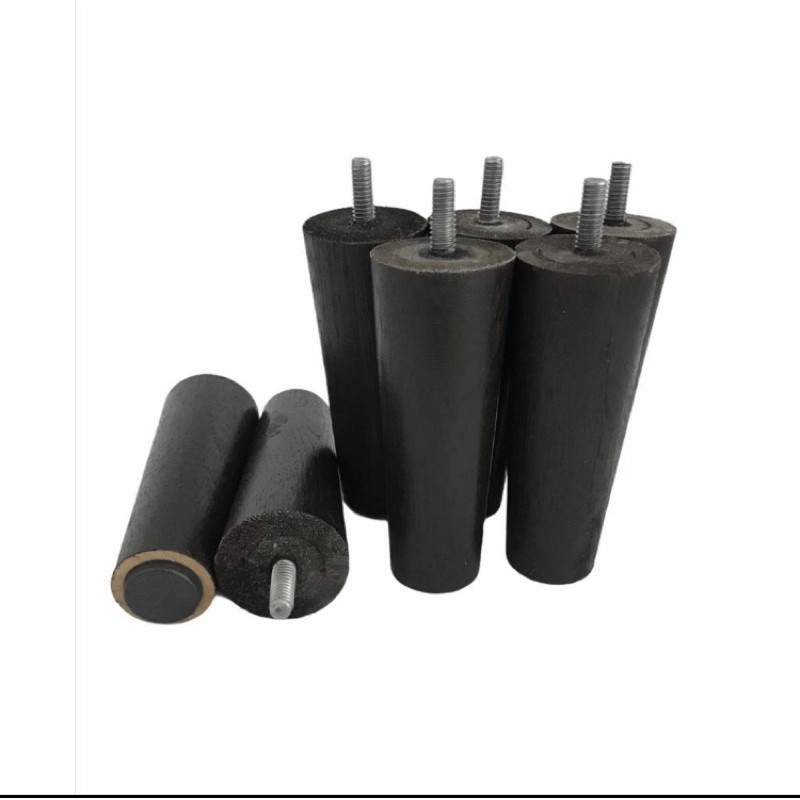 Pés De Cama Box Com 7 Unidades Madeira Maciça Com 12cm Casal-Solteiro Cor Preto
