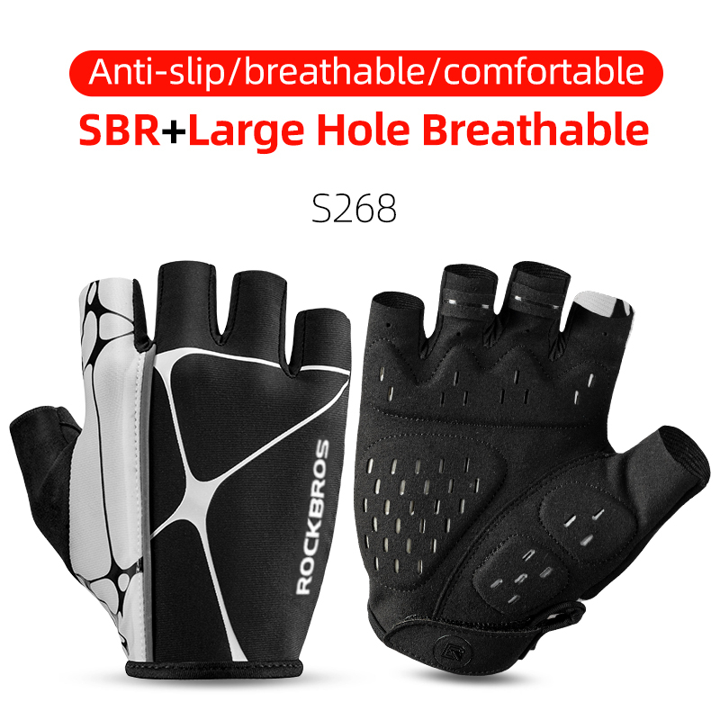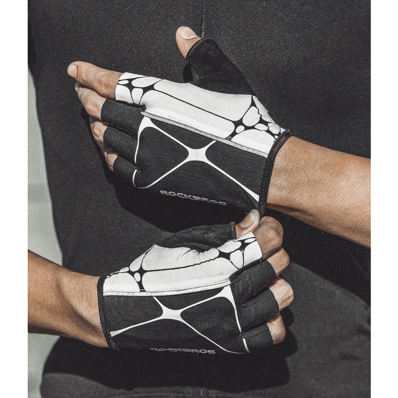 Rockbros Luvas De Ciclismo Meio Dedo Respirável Reflexiva À Prova De Choque