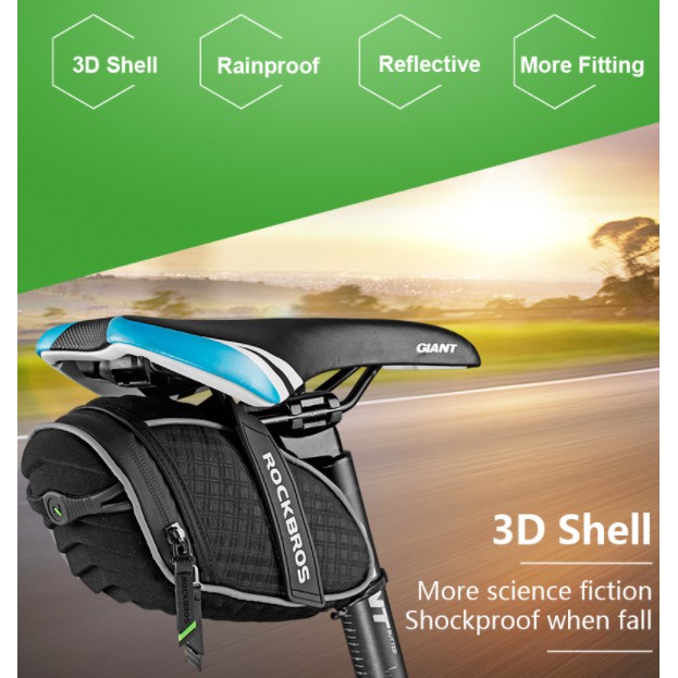 RockBros Bolsa De Selim De Bicicleta Refletiva 3D Preta À Prova D'água