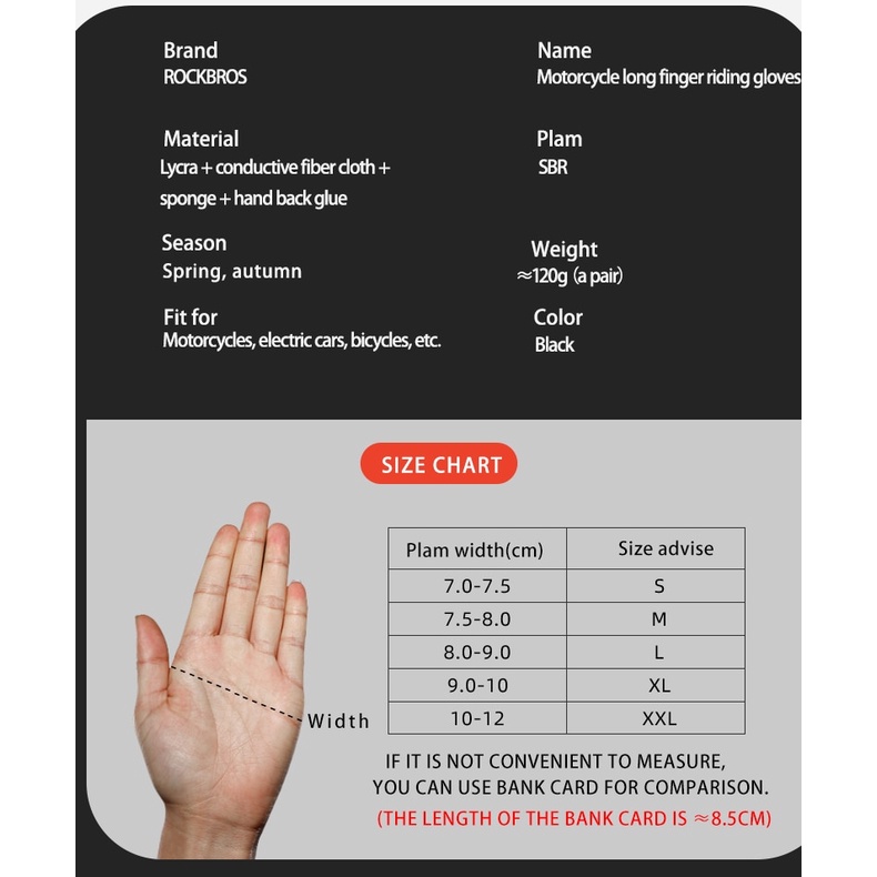 Rockbros Luvas De Motocicleta Antideslizante/Respirável/Tela Sensível Ao Toque/Antiderrapante Para/Moto