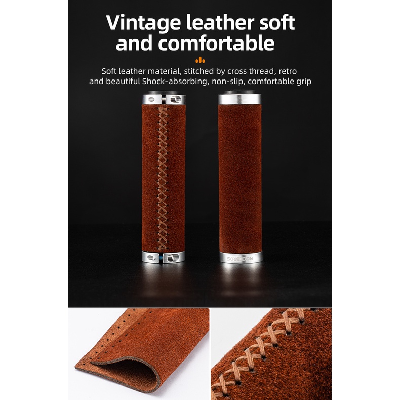 ROCKBROS Punhos De Bicicleta Retro Couro De Montanha Punho Grip Lock Anti-Derrapante Macio Acessórios
