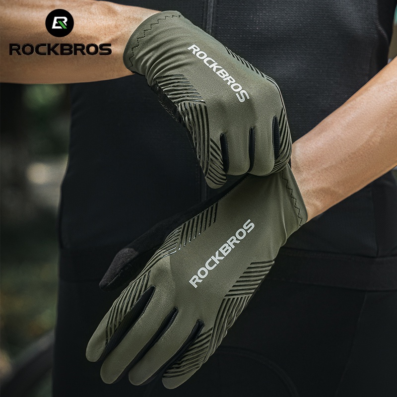 Luvas De Bicicleta Rockbros Cycling Touch Screen Full Finger MTB De Estrada À Prova De Choque Antiderrapantes Elásticas De Outono Respiráveis