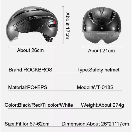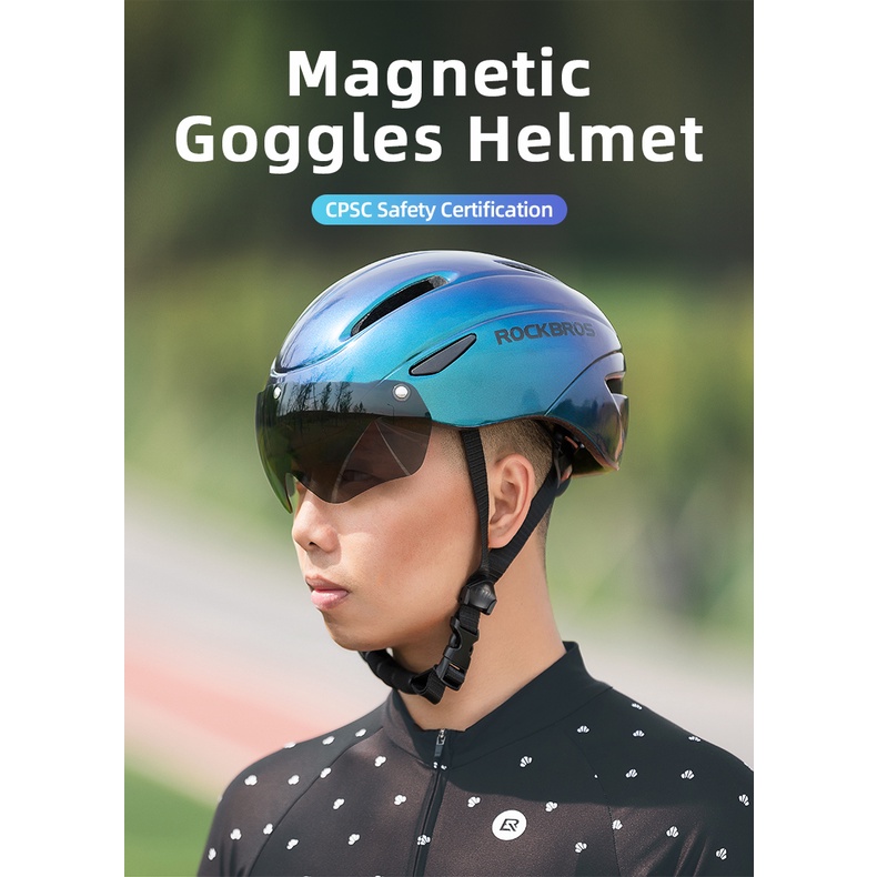 ROCKBROS Capacete De Bicicleta Com Óculos MTB De Estrada EPS Ciclismo Solado Integralmente 57-62CM