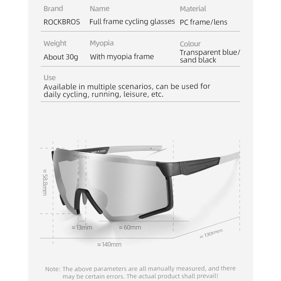 Óculos ROCKBROS Ciclismo Fotocromático/Polarizado Com Armação Completa Bicicleta De Sol Ao Ar Livre Esportivos MTB Proteção Unisexo Myopia Moldura