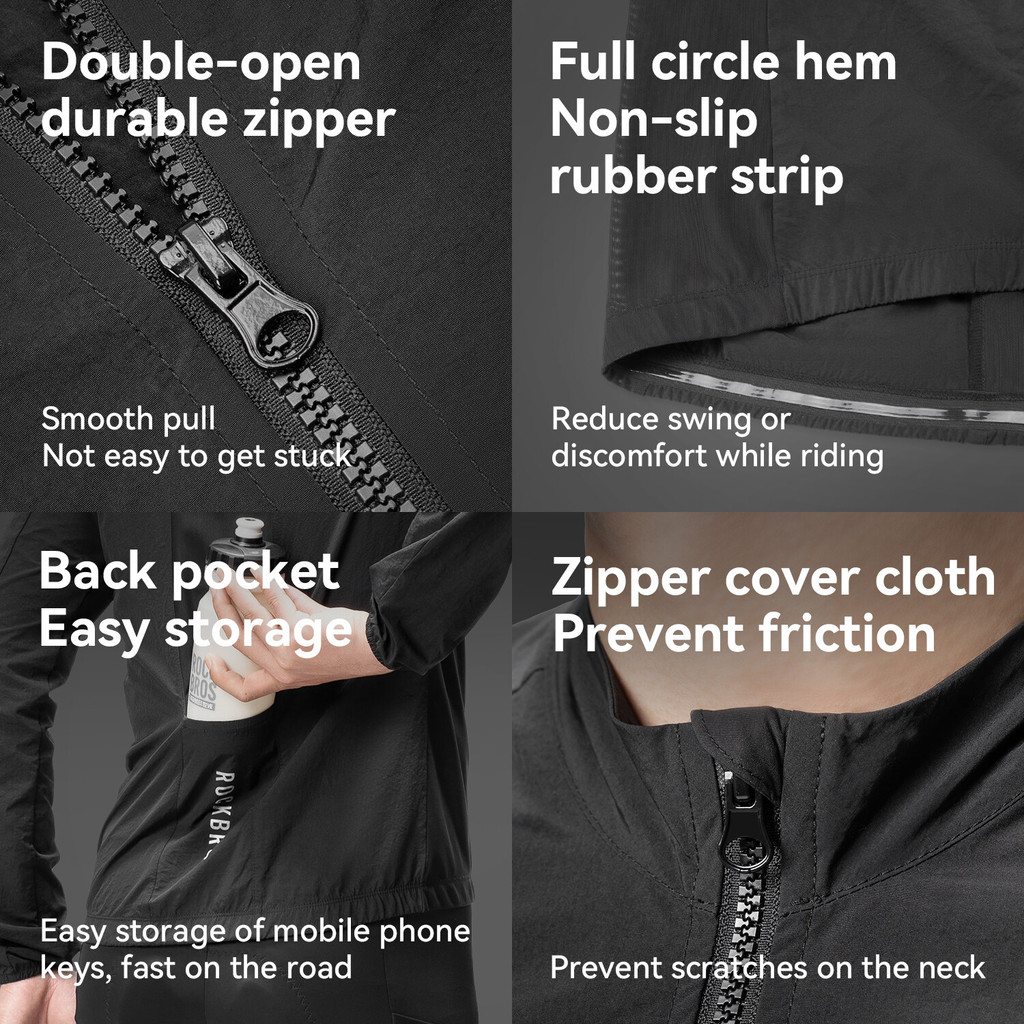 ROCKBROS Jaqueta Corta-Vento Para Ciclismo À Prova De Bicicleta De Estrada Manga Comprida Respirável E Confortável Top M