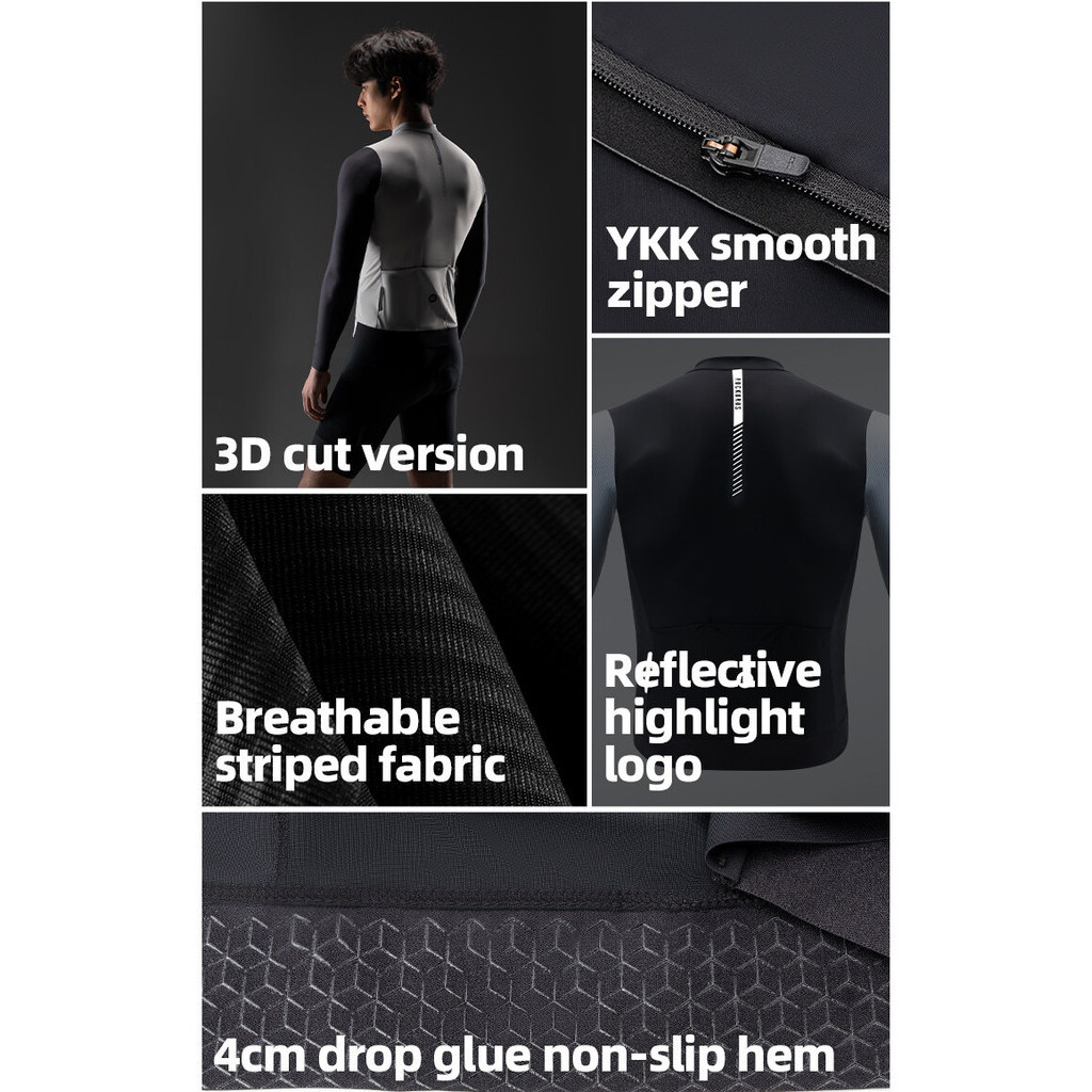 ROCKBROS Manga Longa Jersey Homens De Competição De Ciclismo Leve E Respirável Elástico Refletivo MTB Vestuário De Bicicleta De Estrada