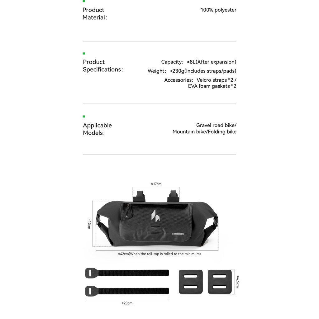 ROCKBROS Bolsa Frontal Para Bicicleta À Prova D'água 8L Guidão De Grande Capacidade Acessórios Estrada MTB