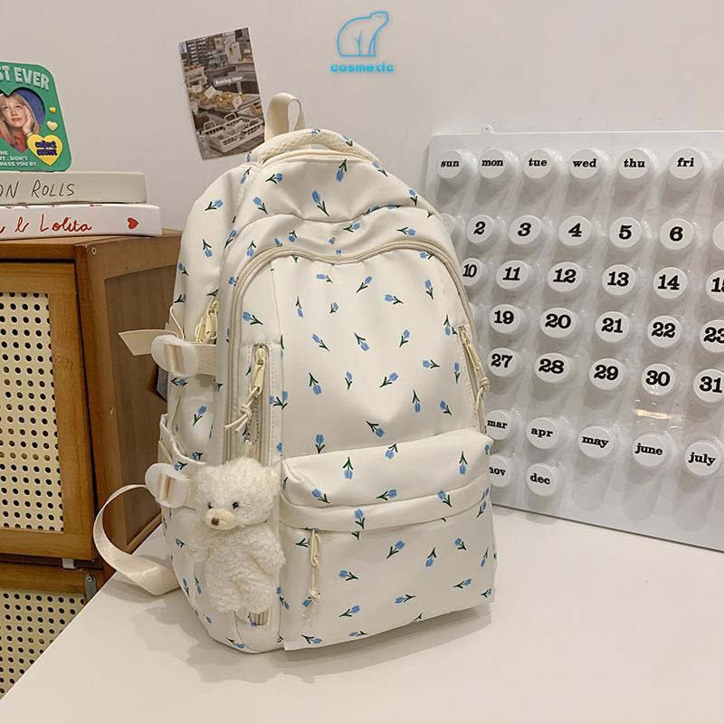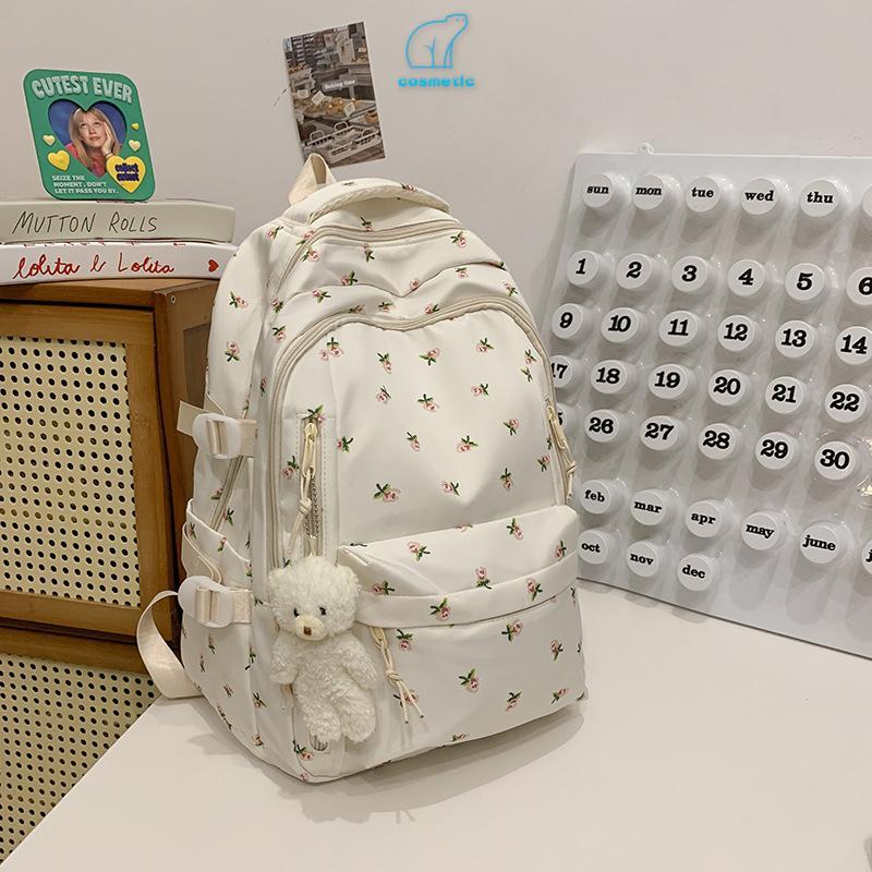 Mochila Esportiva Floral De Lona Reforçada Grande Feminina Escola Universidade De Viagem Moda Casual Unissex