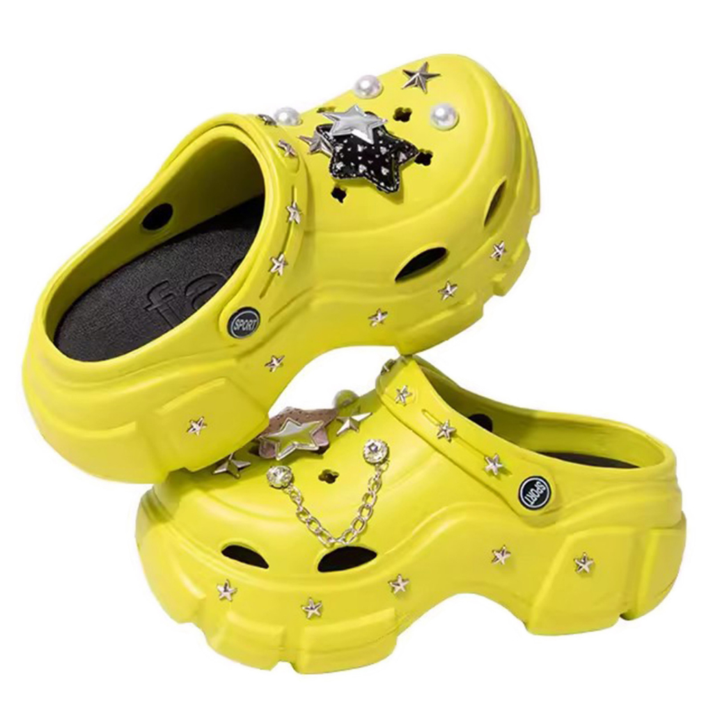 2025 Novas Verão EVA Punk Plataforma Tamanho Sandalia De Saltos Grossa Feminino Combina Exterior Estilo Praia