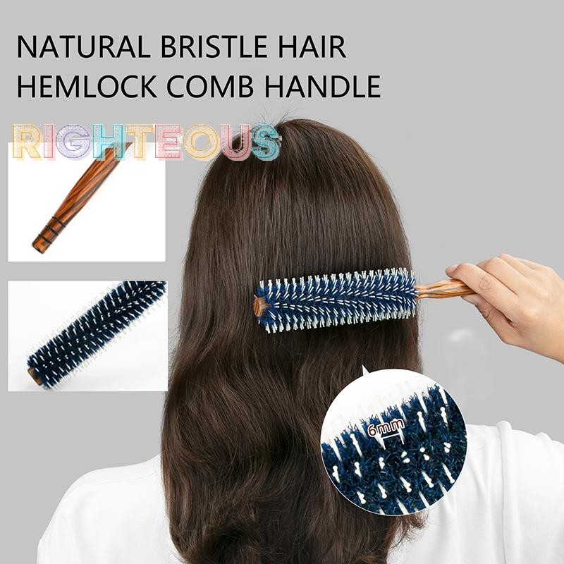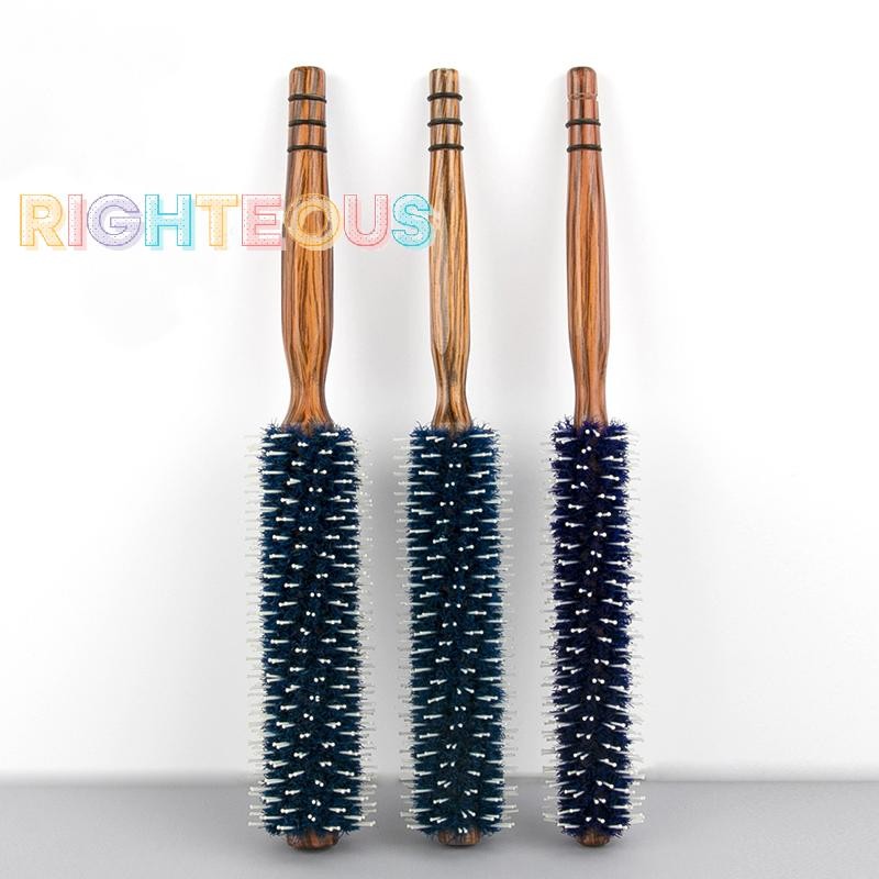 Rightrous Cabelo Rolo Redondo Escova De Madeira Cerdas De Javali Pente Náilon Antiestática Soprando Ondulação DIY Ferram