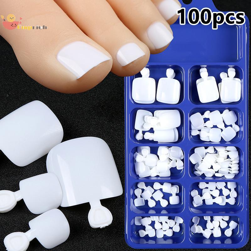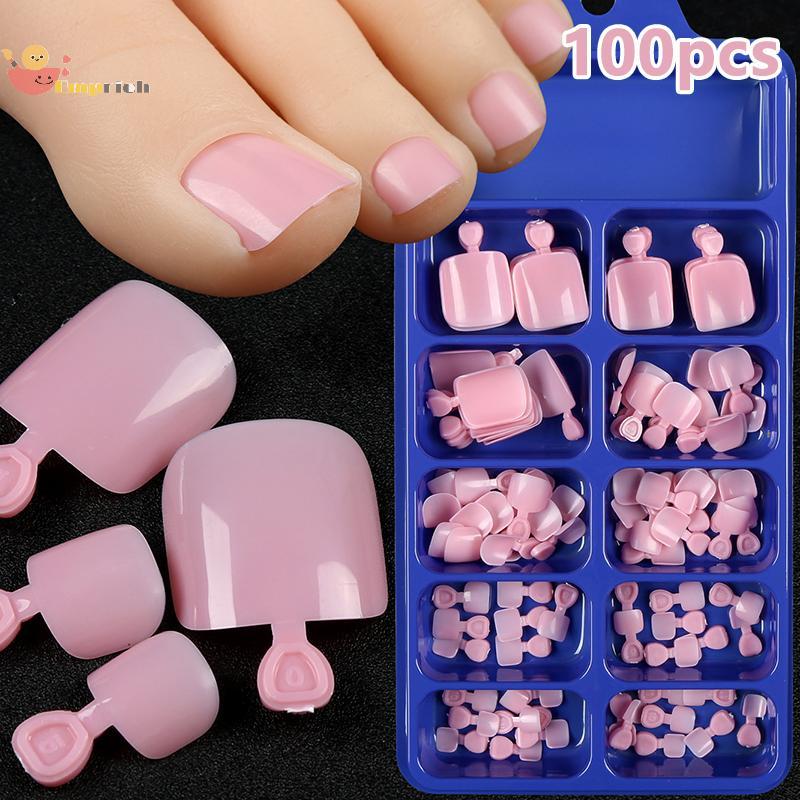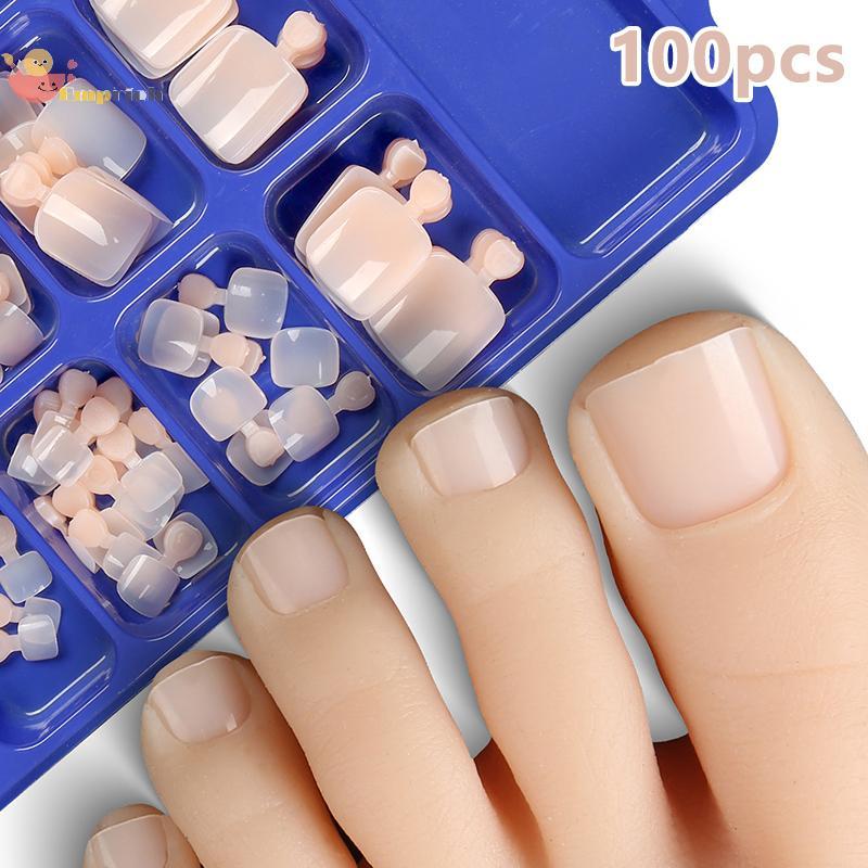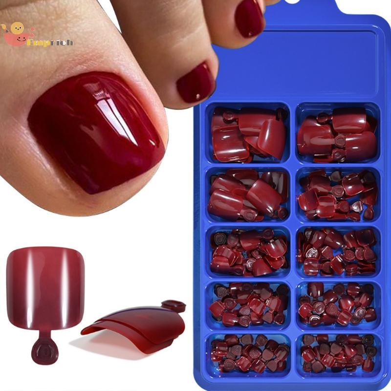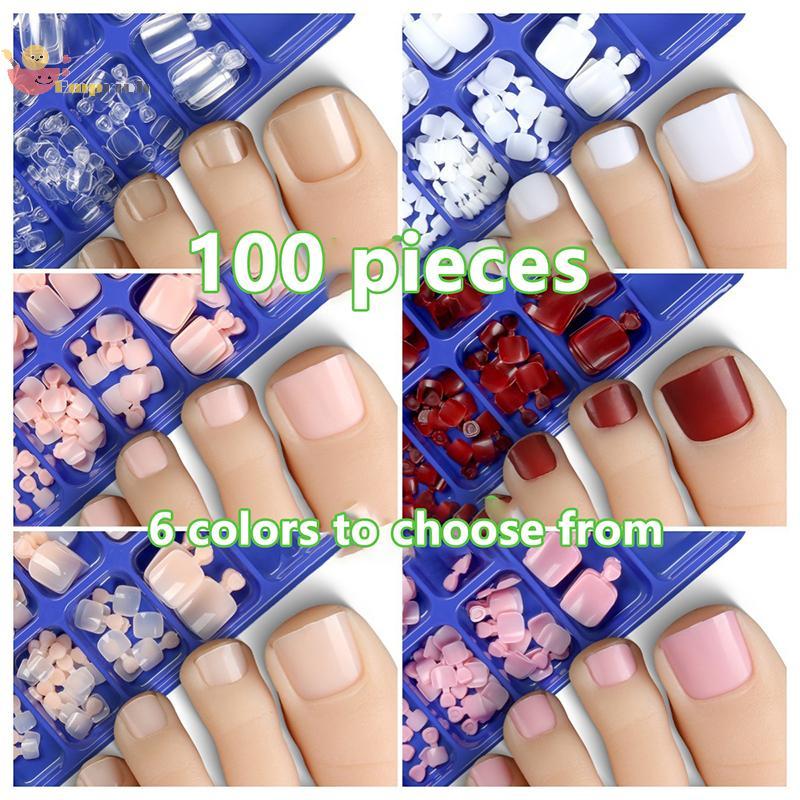 EMCH > 100 Pçs Unha Falsa Natural Cor Sólida Imprensa No Dedo Do Pé Cobertura Completa Unhas Quadradas Dicas De Arte Ráp